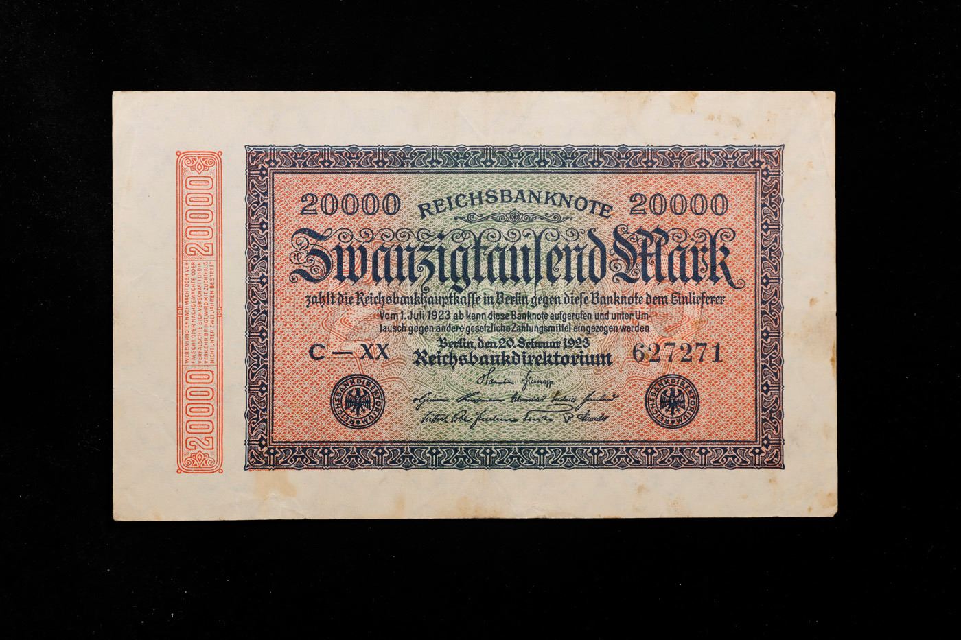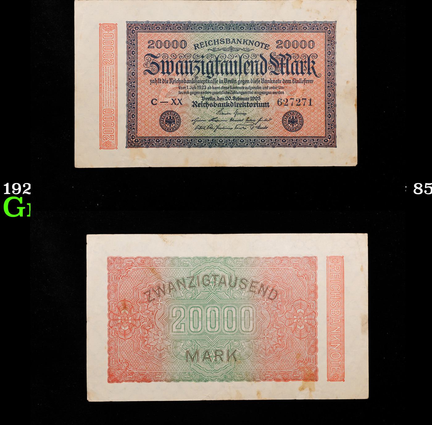 1923 Weimar Germany 20,000 Mark Note P# 85E Grades Choice AU/BU Slider