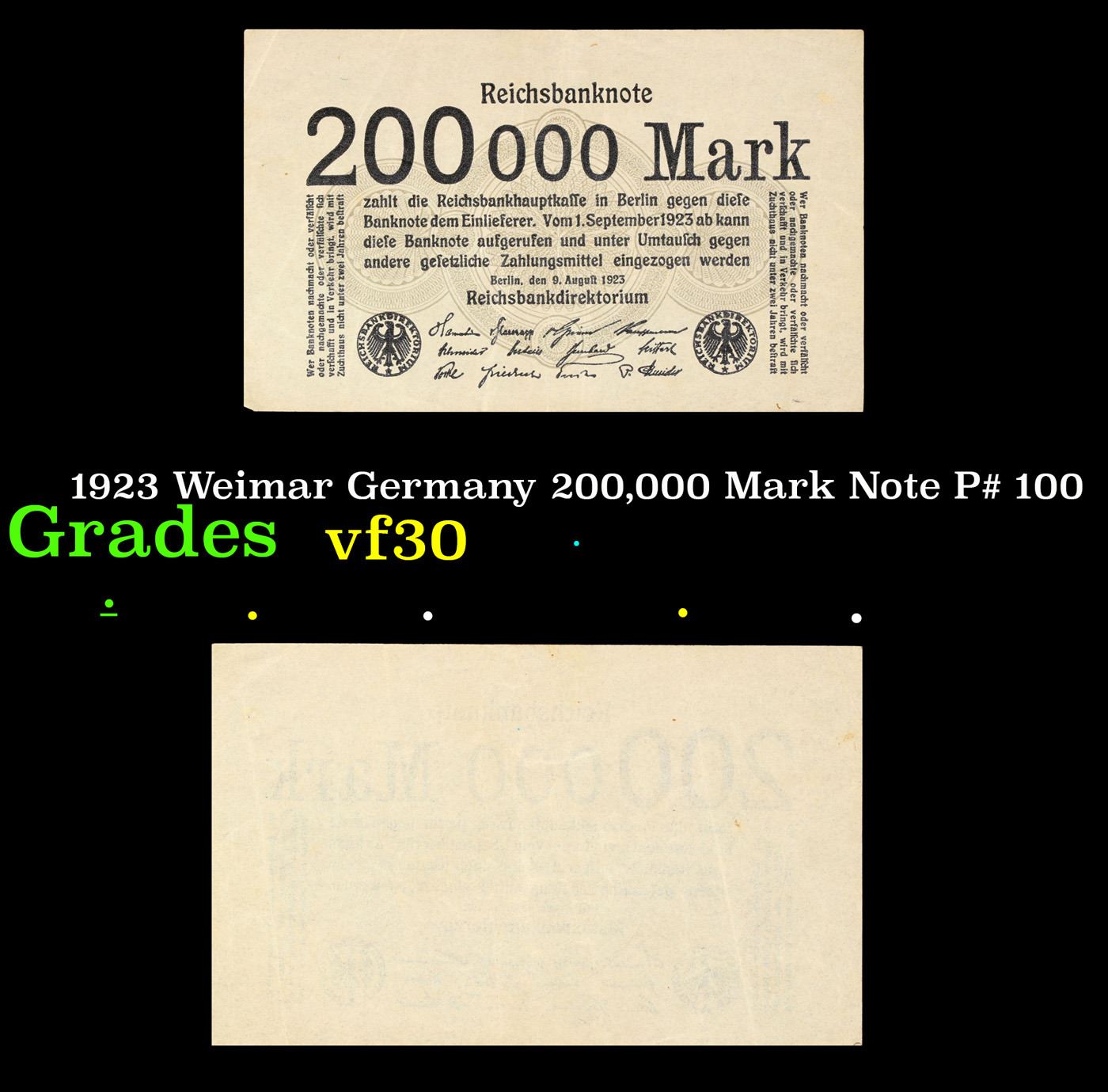 1923 Weimar Germany 200,000 Mark Note P# 100 Grades vf++