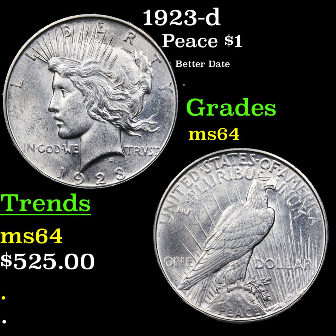1923-d Peace Dollar $1 Grades Choice Unc.