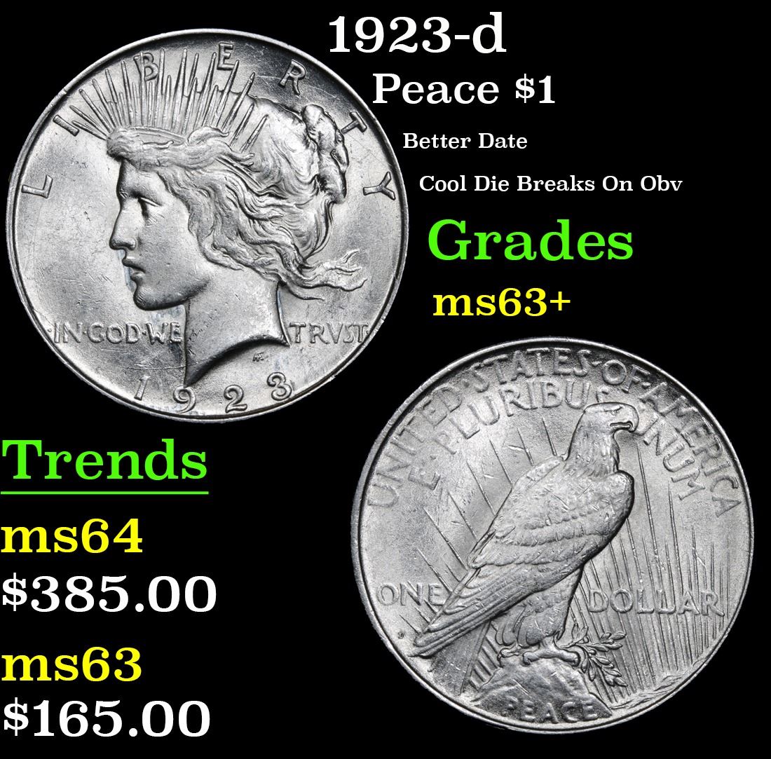 1923-d Peace Dollar $1 Grades Select+ Unc. Better Date Cool Die Breaks On Obv