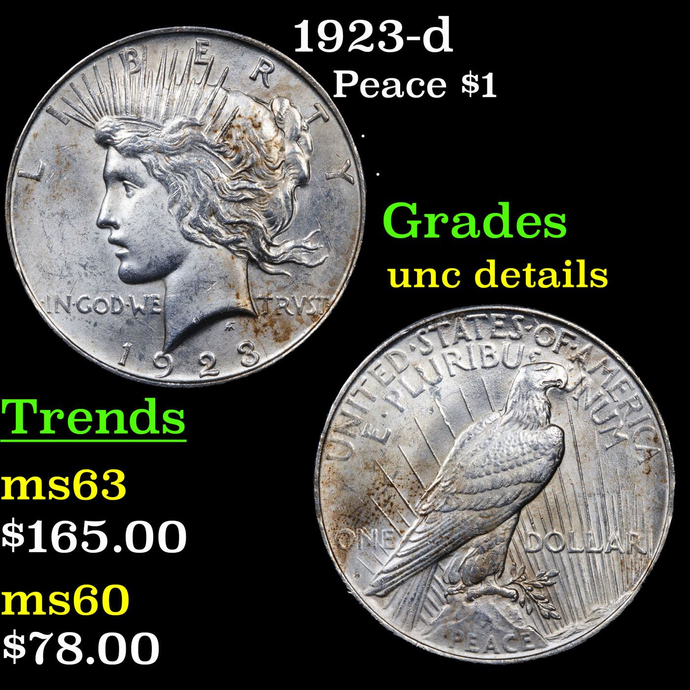 1923-d Peace Dollar $1 Grades Unc Details.