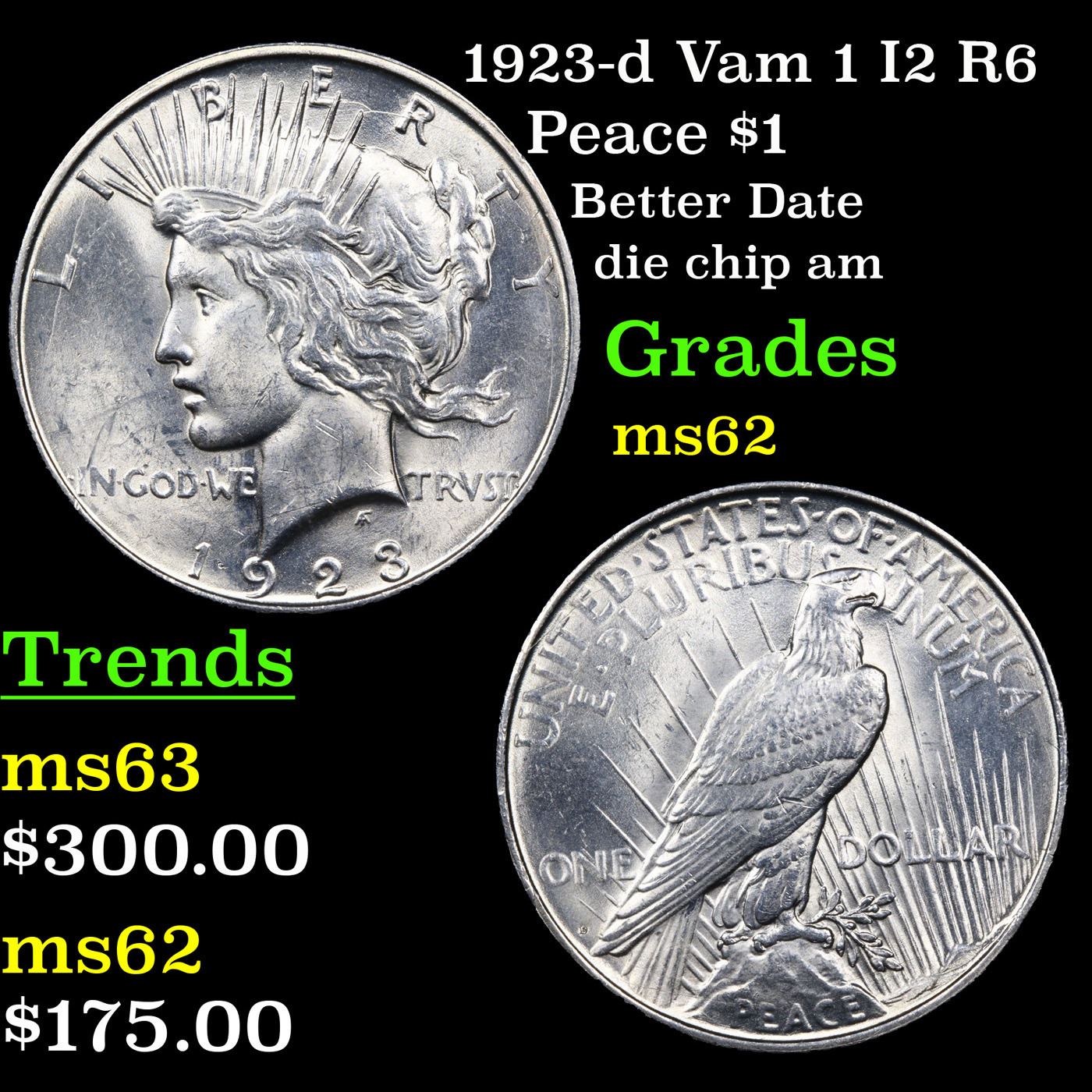 1923-d Vam 1 I2 R6 Peace Dollar $1 Graded Select Unc. 0