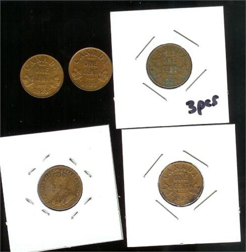 1923, lot of 5 pieces with small problems. Cleaned or corroded. Grades vary from VG-10 to VF-30.
