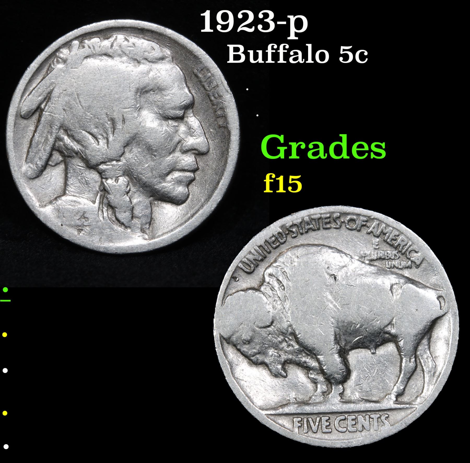 1923-p Buffalo Nickel 5c Grades f+.