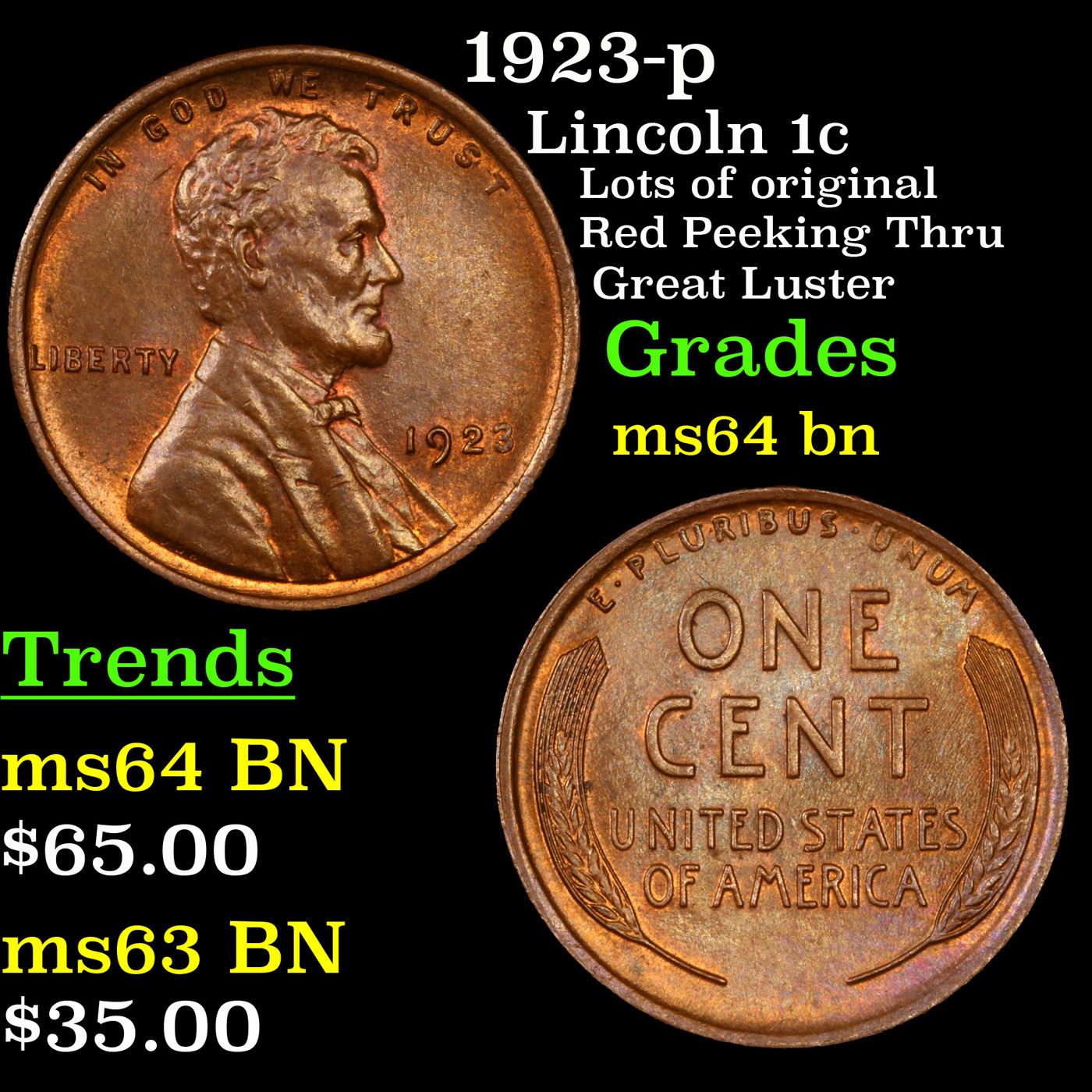 1923-p Lincoln Cent 1c Grades Choice Unc BN.