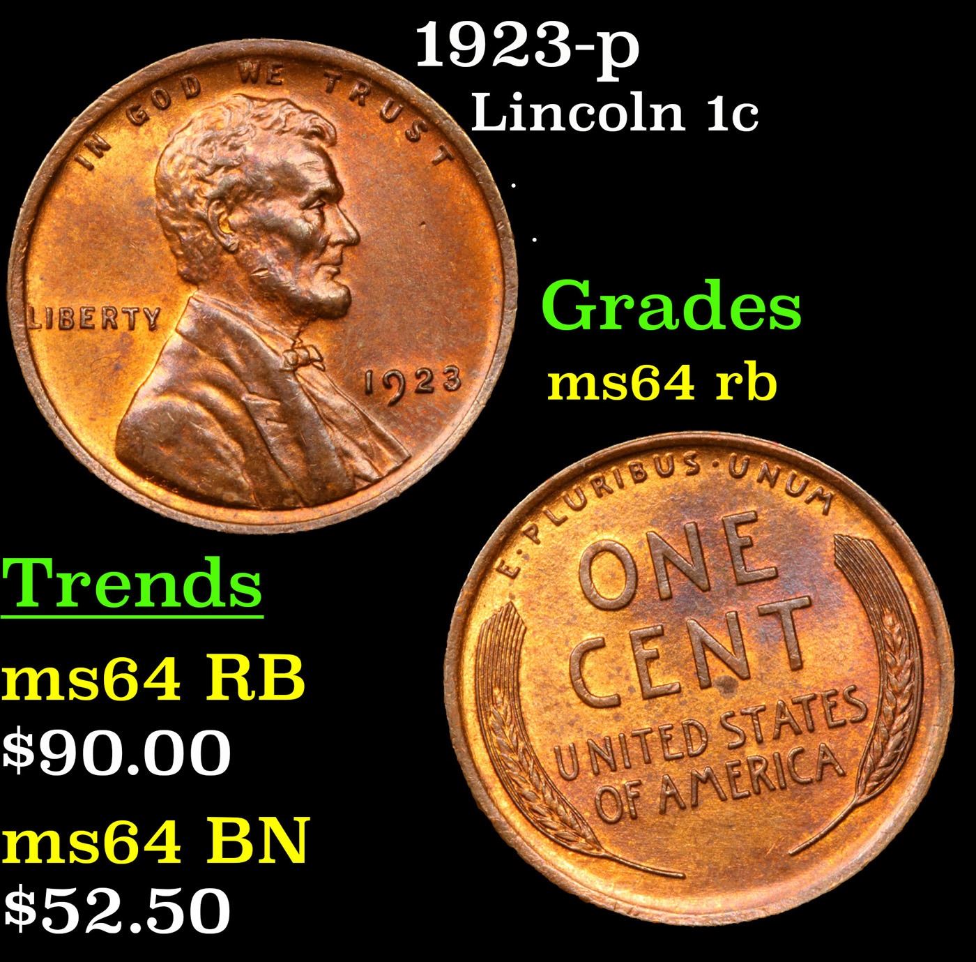 1923-p Lincoln Cent 1c Grades Choice Unc RB.