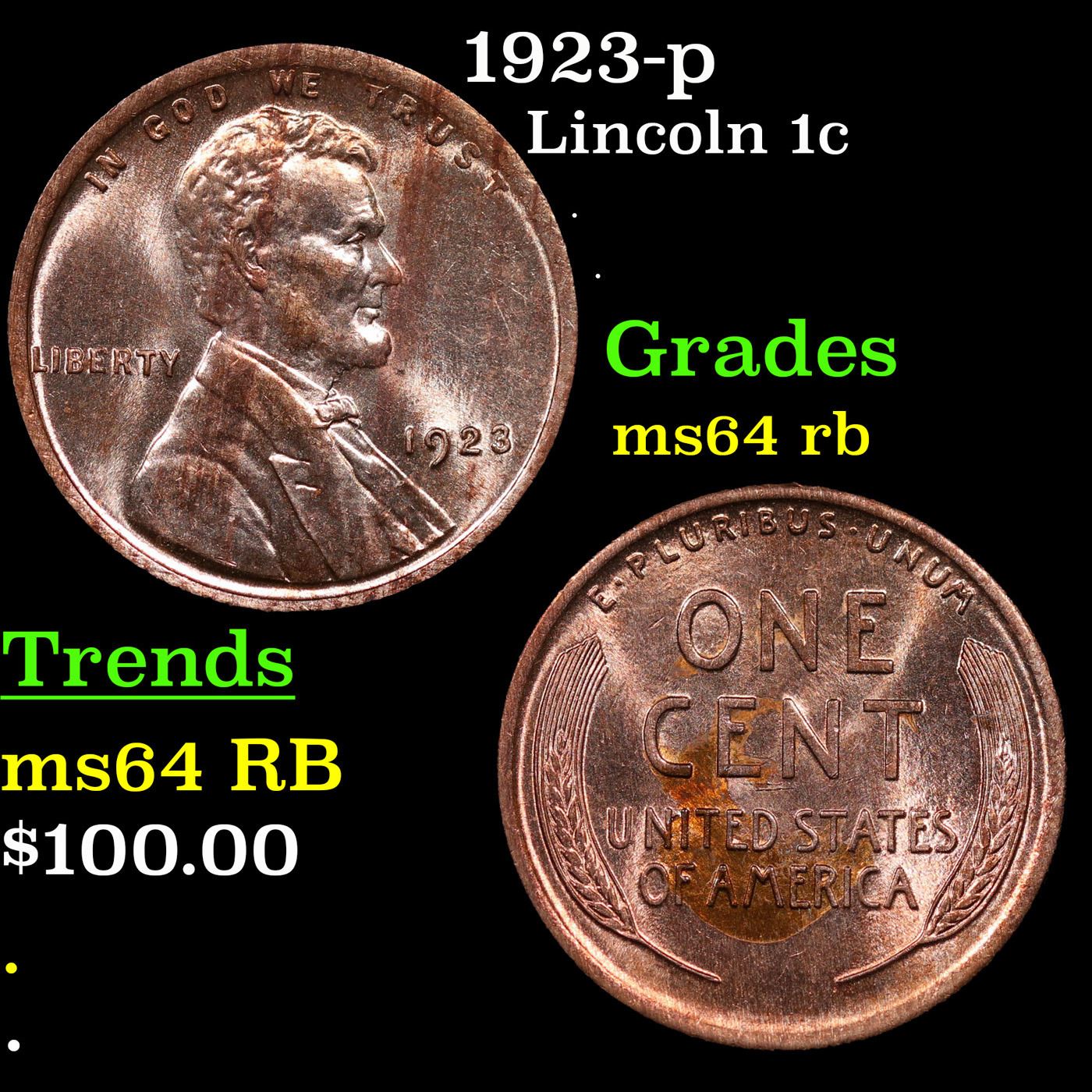 1923-p Lincoln Cent 1c Grades Choice Unc RB.