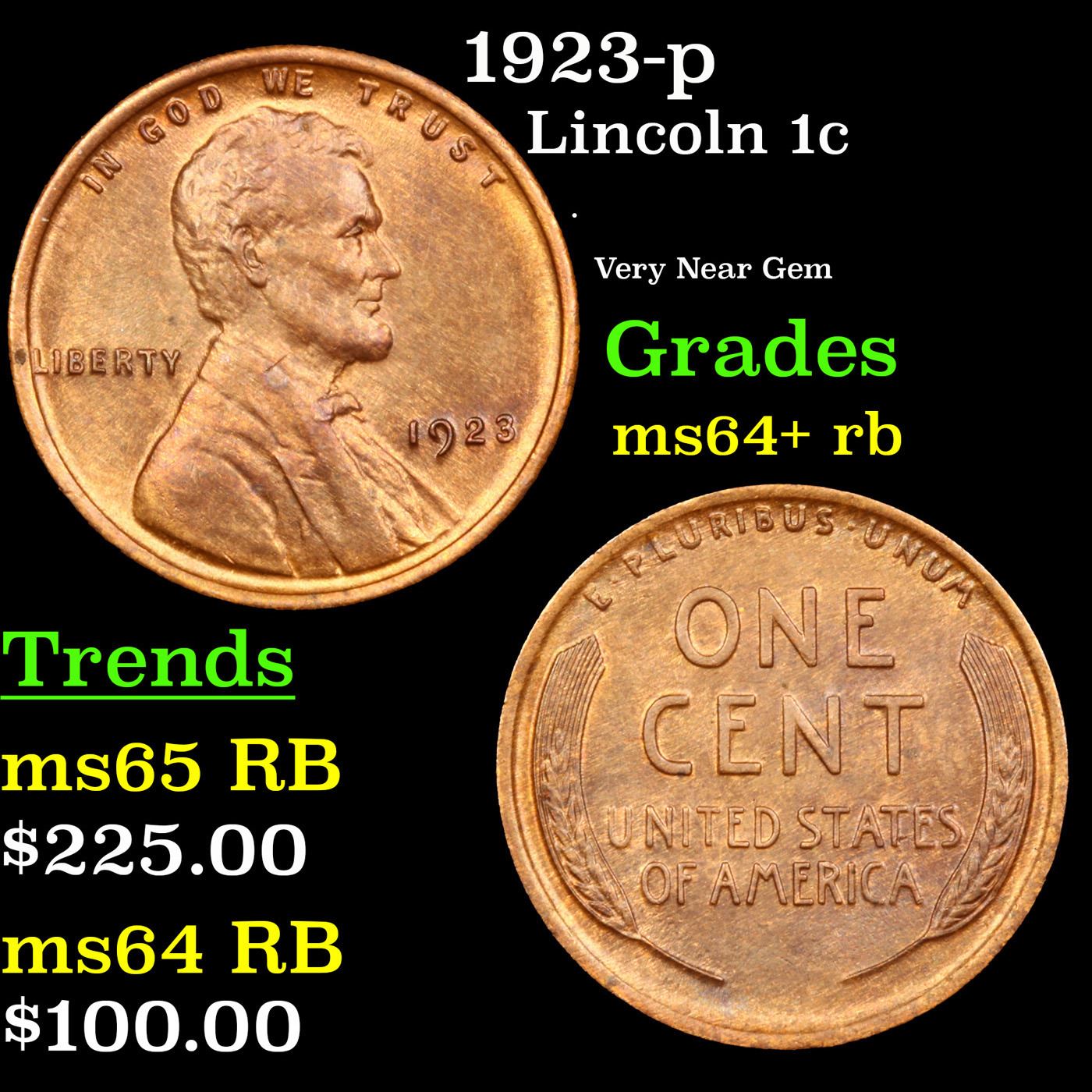 1923-p Lincoln Cent 1c Grades Choice+ Unc RB.