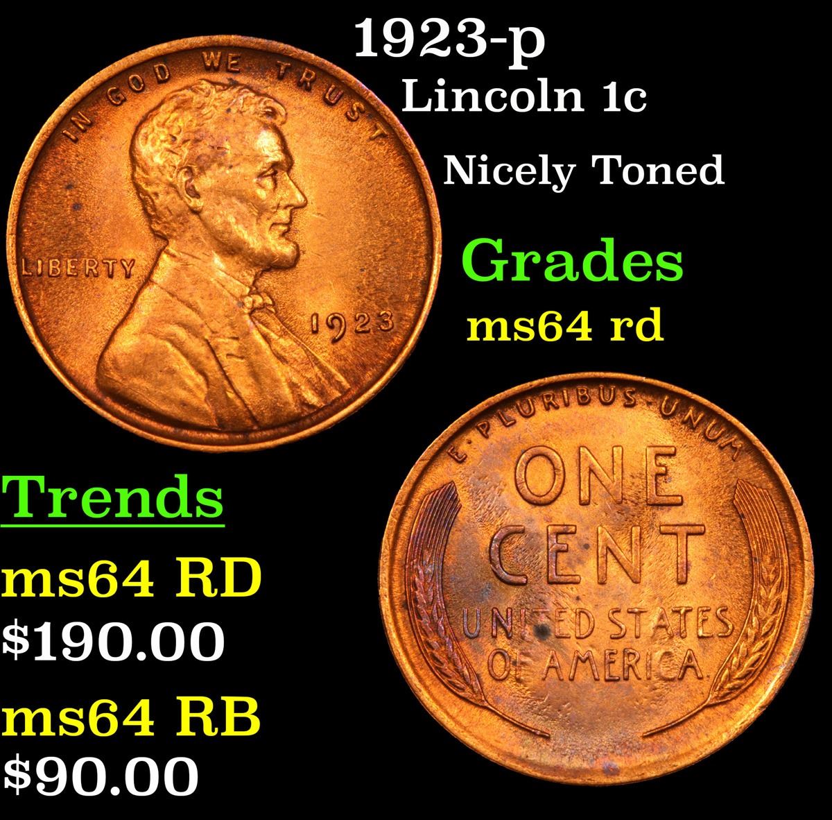 1923-p Lincoln Cent 1c Grades Choice Unc RD.