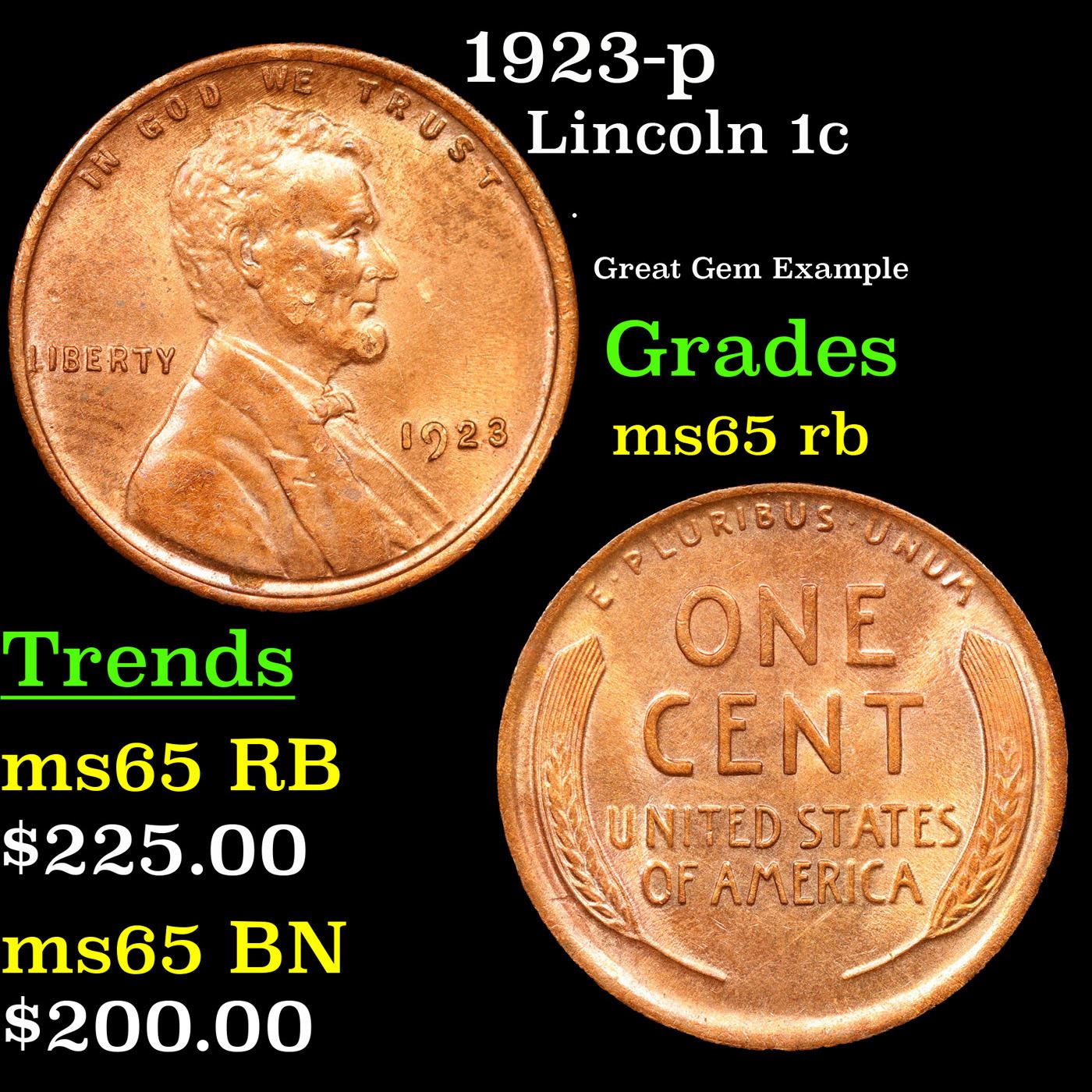 1923-p Lincoln Cent 1c Grades GEM Unc RB.