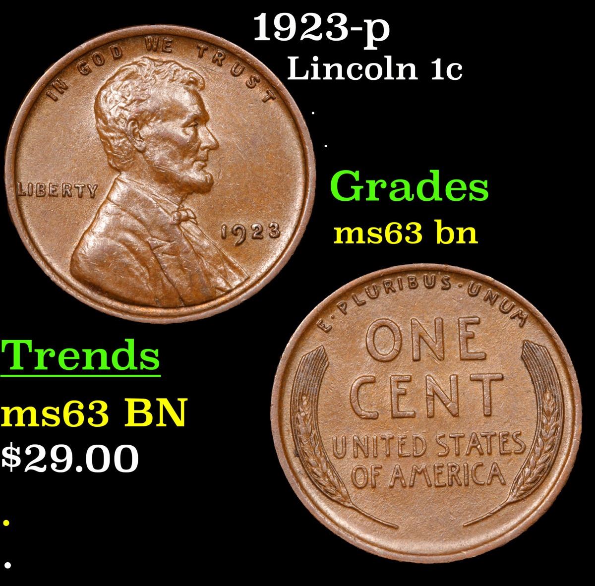 1923-p Lincoln Cent 1c Grades Select Unc BN.