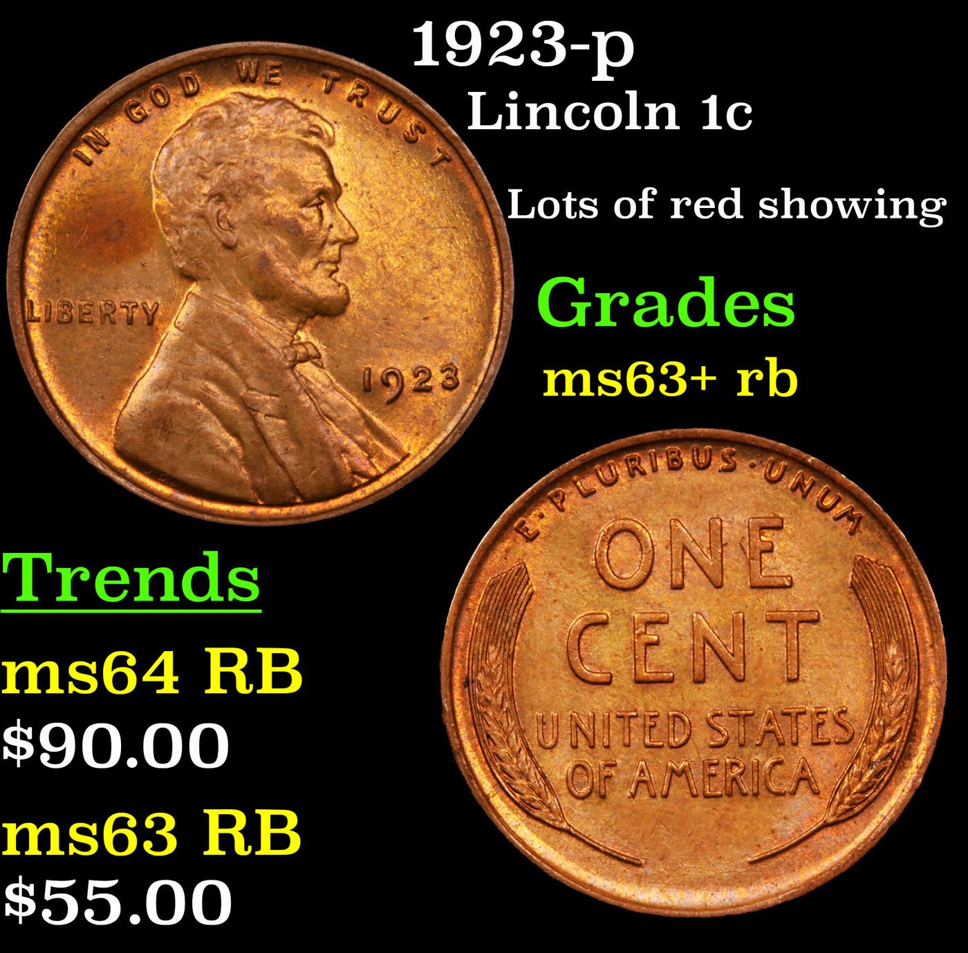 1923-p Lincoln Cent 1c Grades Select+ Unc RB.