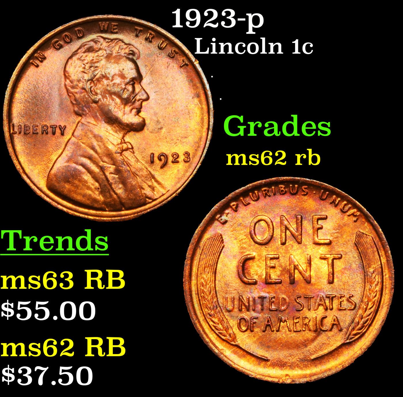 1923-p Lincoln Cent 1c Grades Select Unc RB.