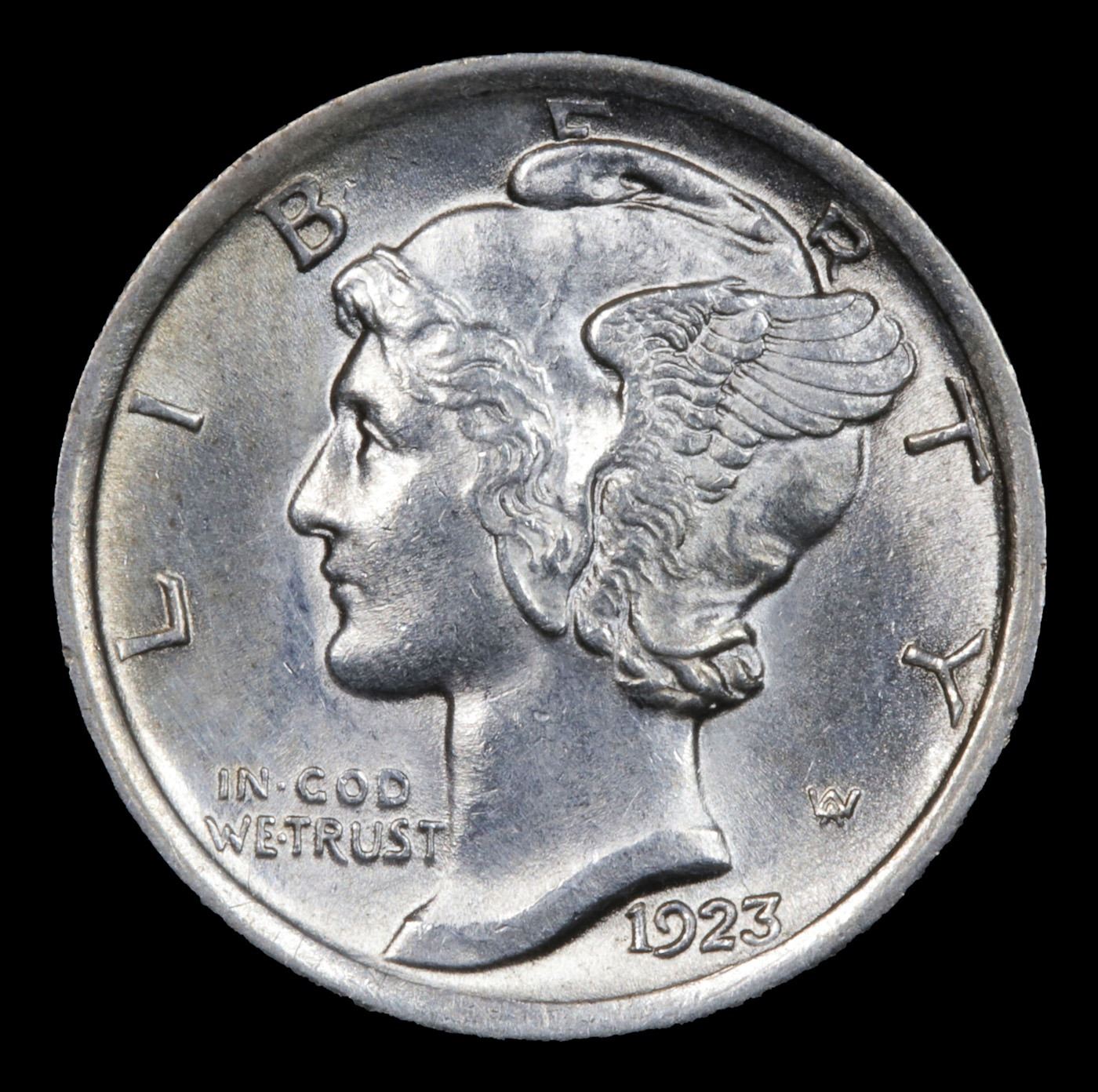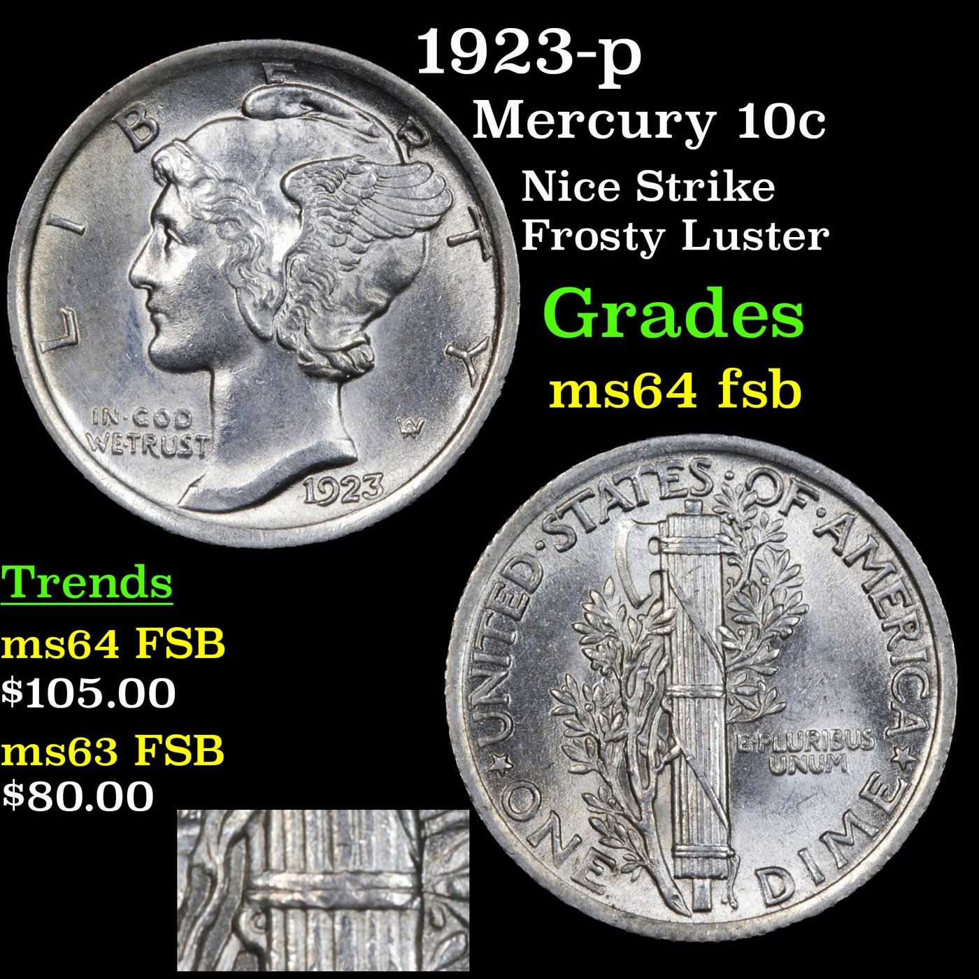 1923-p Mercury Dime 10c Grades Choice Unc FSB.