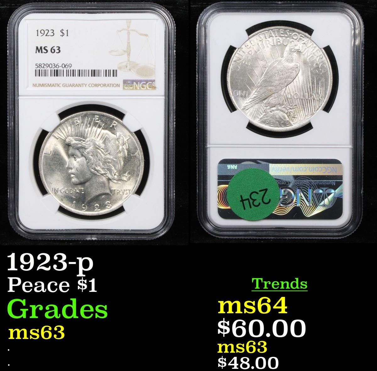 1923-p Peace Dollar $1 Graded ms63 By NGC. 0