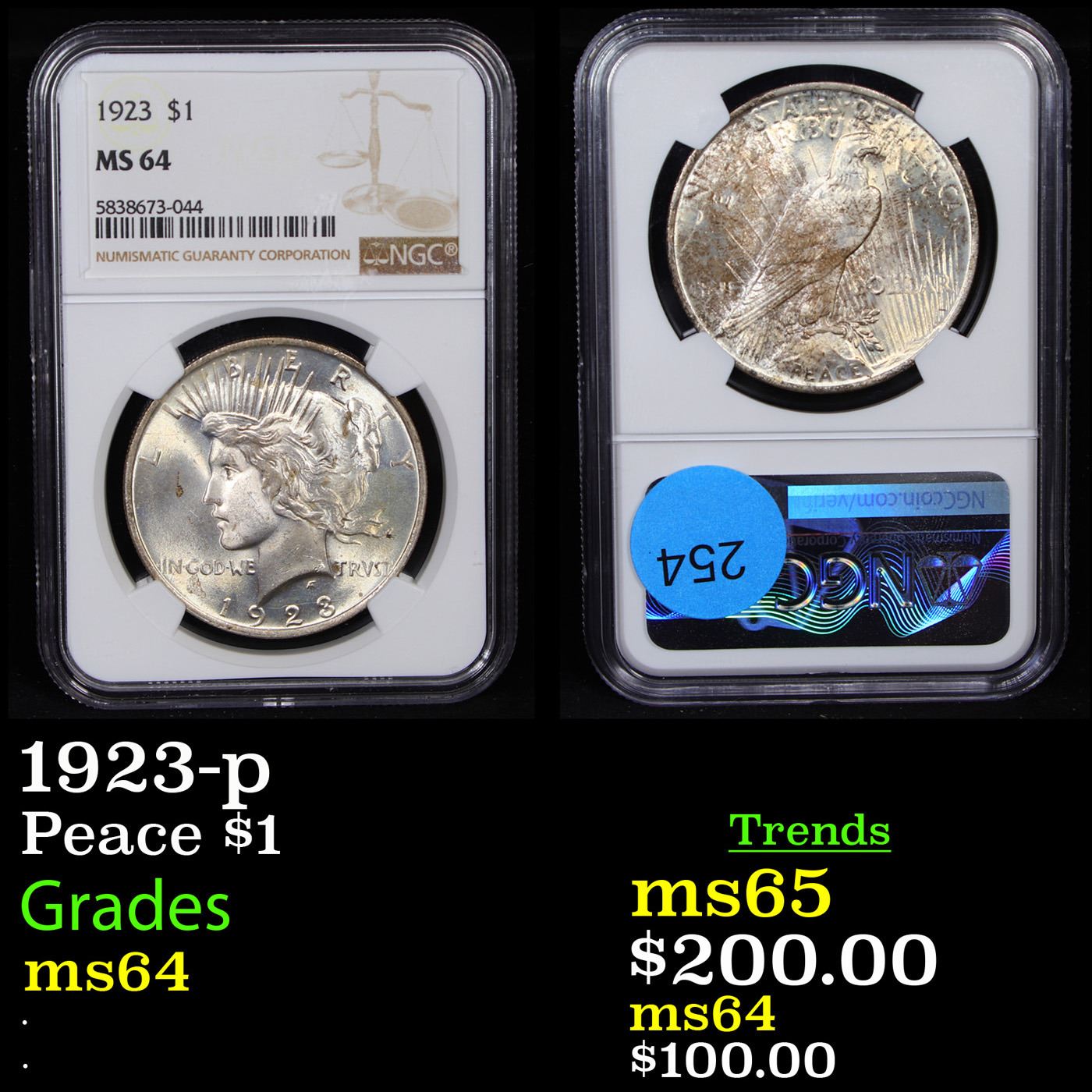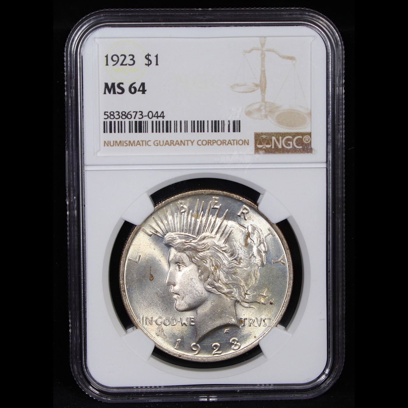 1923-p Peace Dollar $1 Graded ms64 By NGC. 0