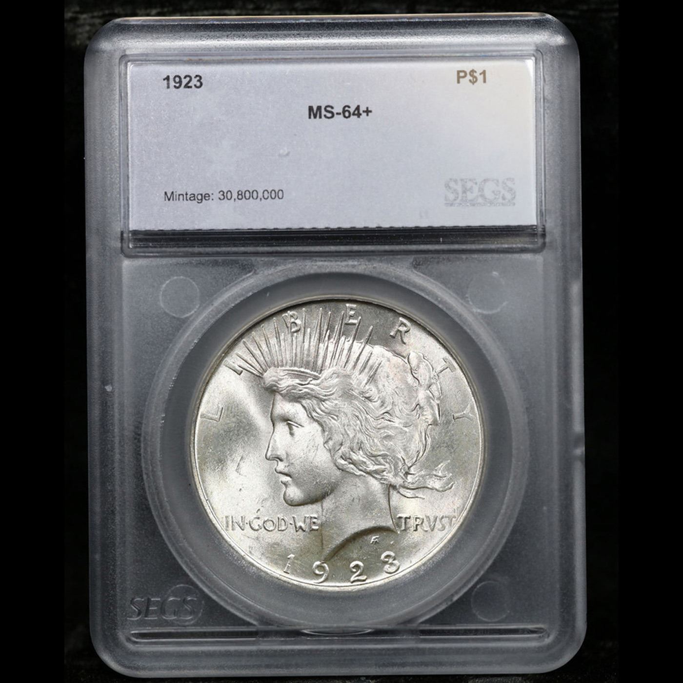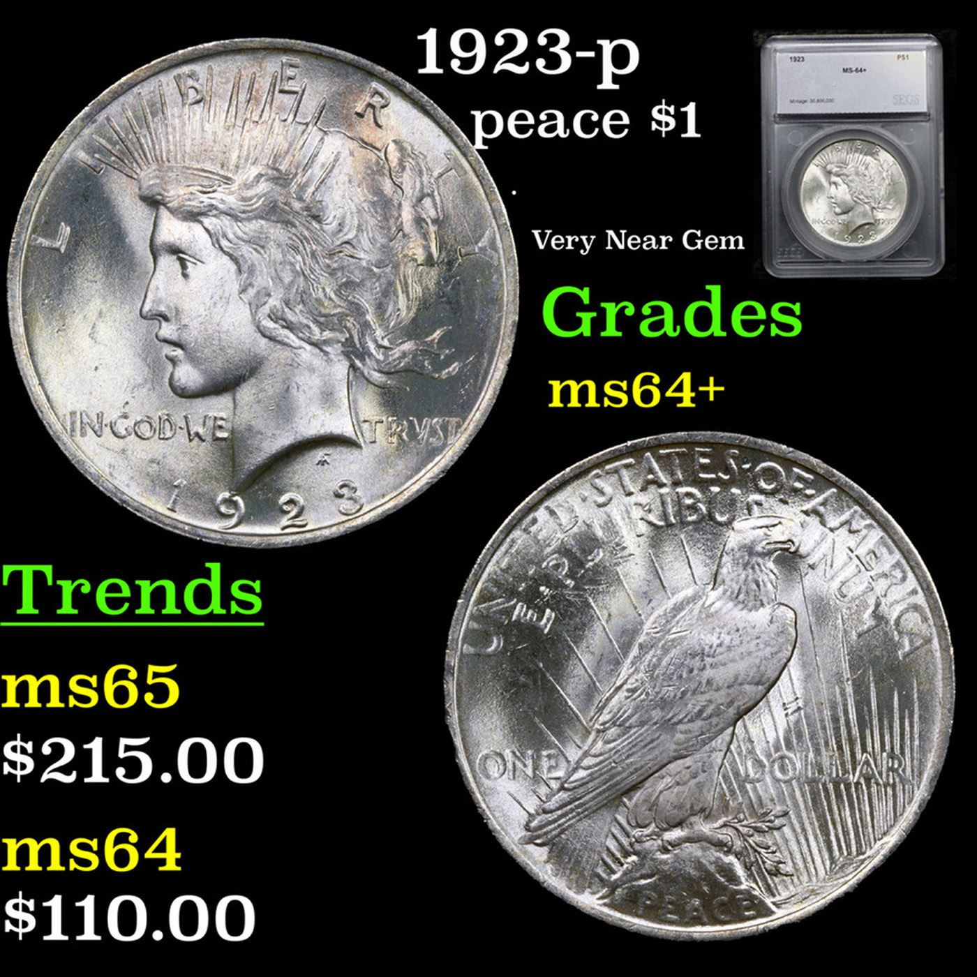 1923-p Peace Dollar $1 Graded ms64+ By SEGS.