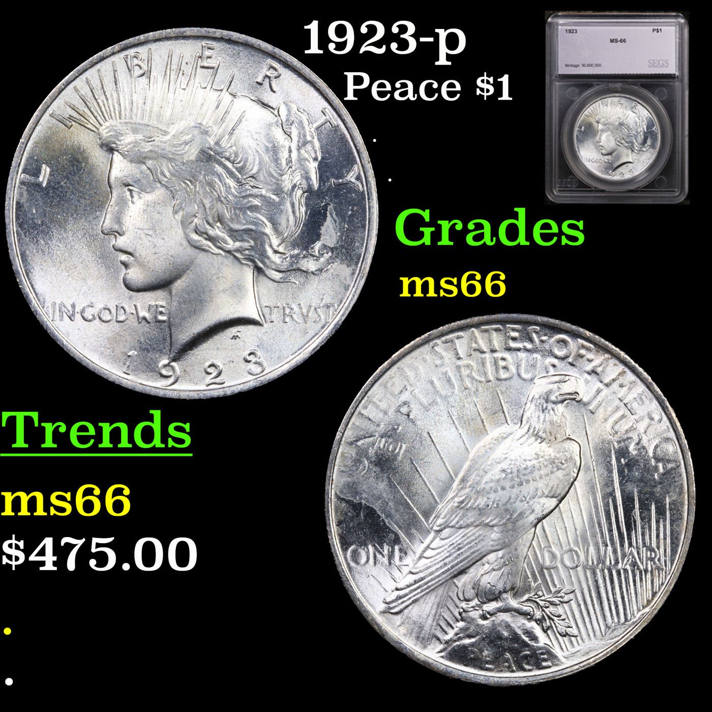 1923-p Peace Dollar $1 Graded ms66 BY SEGS.