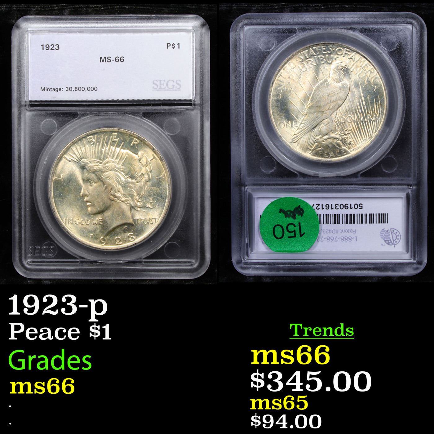 1923-p Peace Dollar $1 Graded ms66 By SEGS.