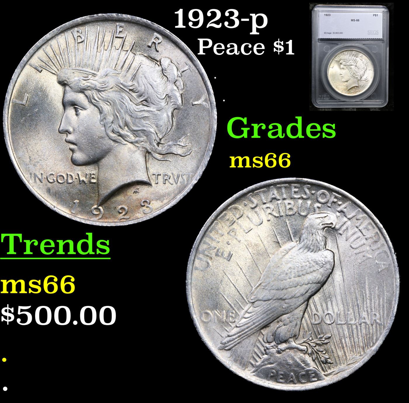 1923-p Peace Dollar $1 Graded ms66 By SEGS.