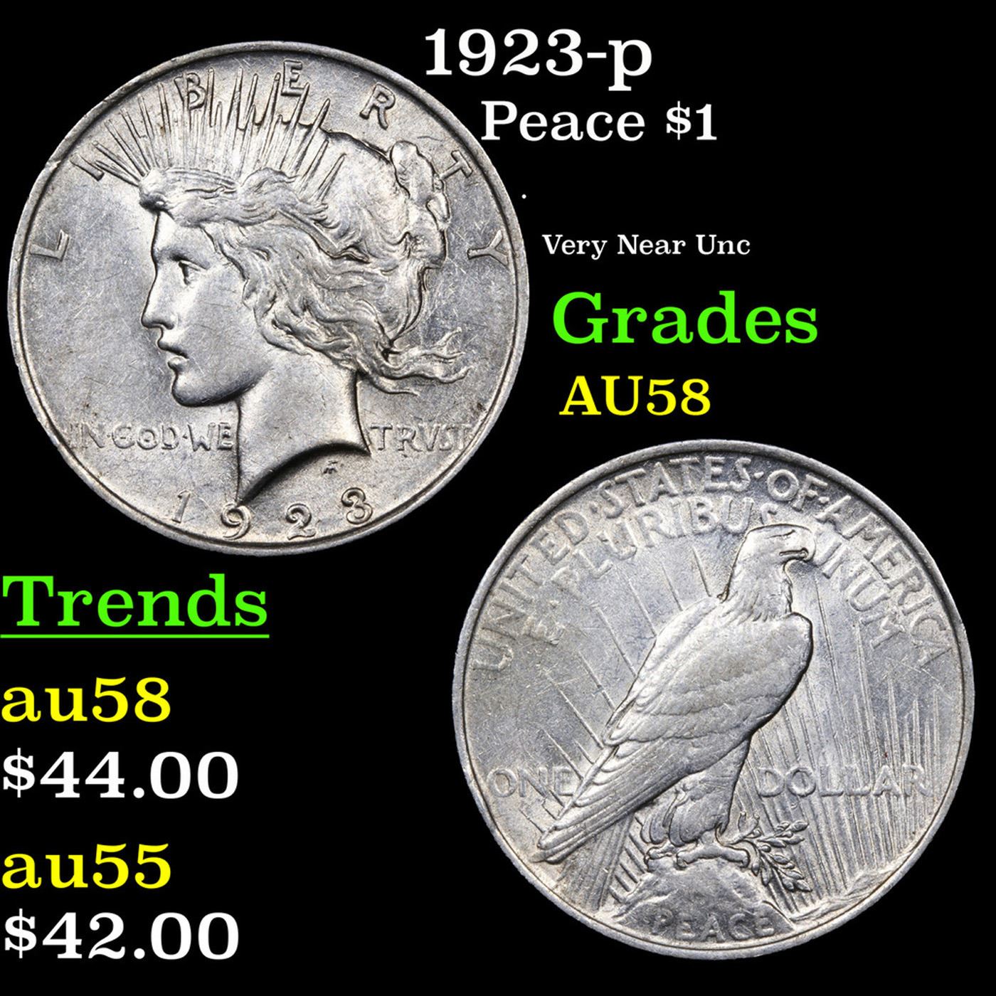 1923-p Peace Dollar $1 Grades Choice AU/BU Slider.