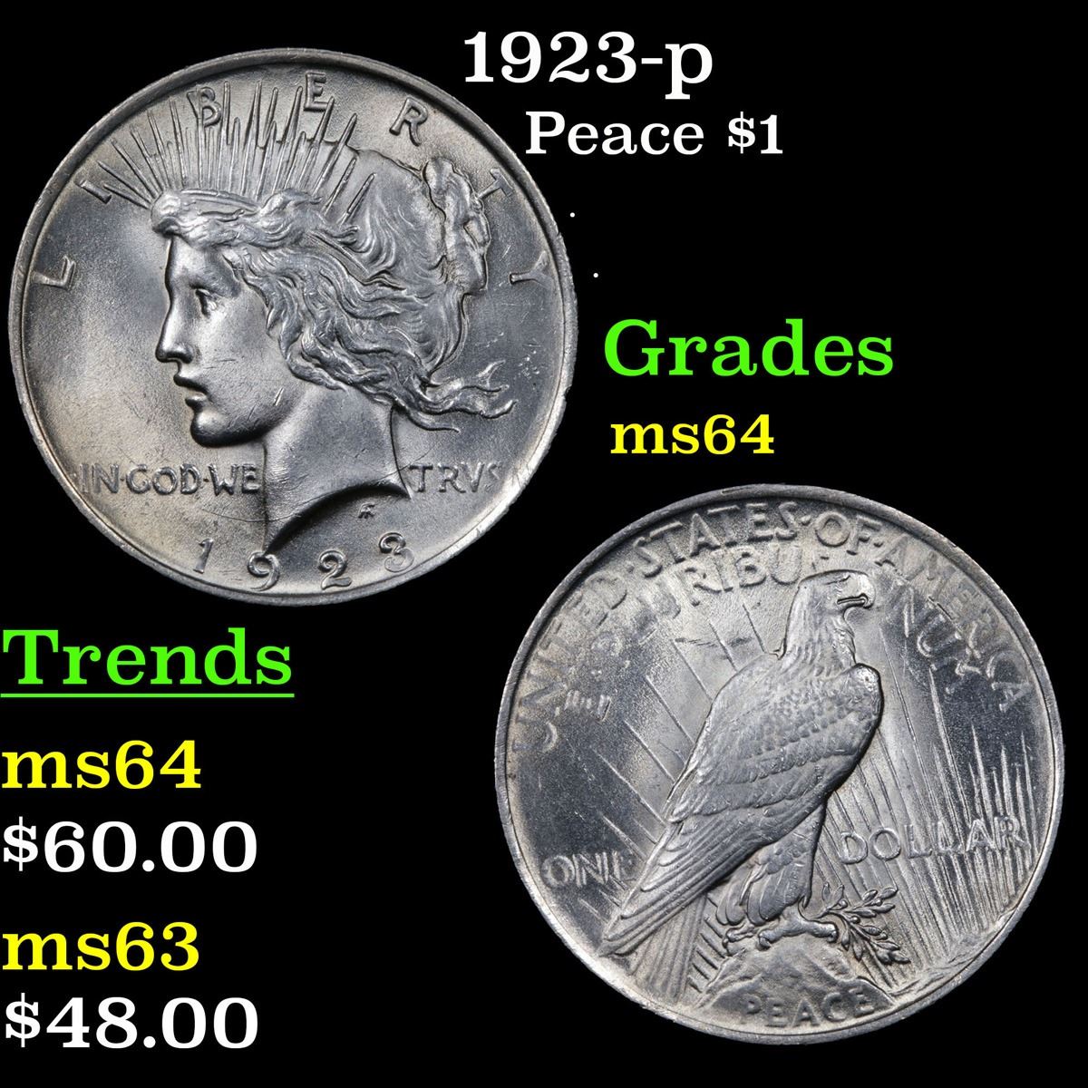 1923-p Peace Dollar $1 Grades Choice Unc.