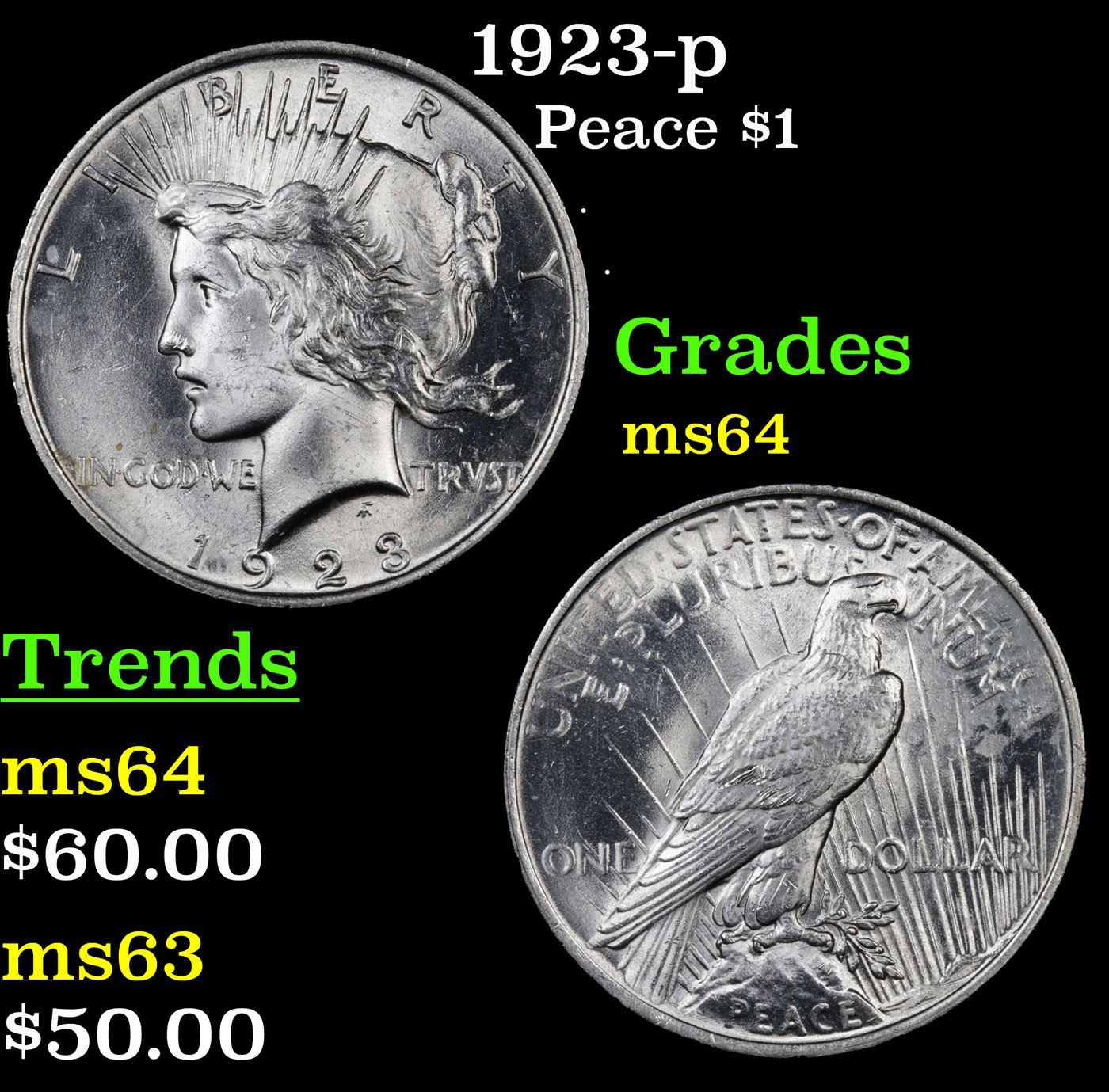 1923-p Peace Dollar $1 Grades Choice Unc.