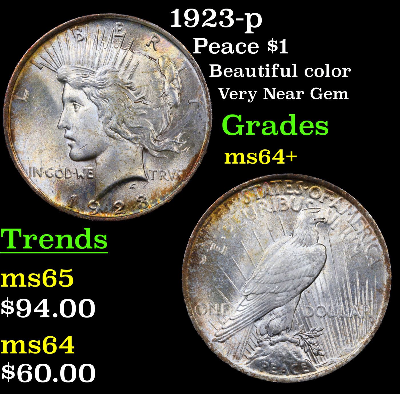 1923-p Peace Dollar $1 Grades Choice+ Unc.