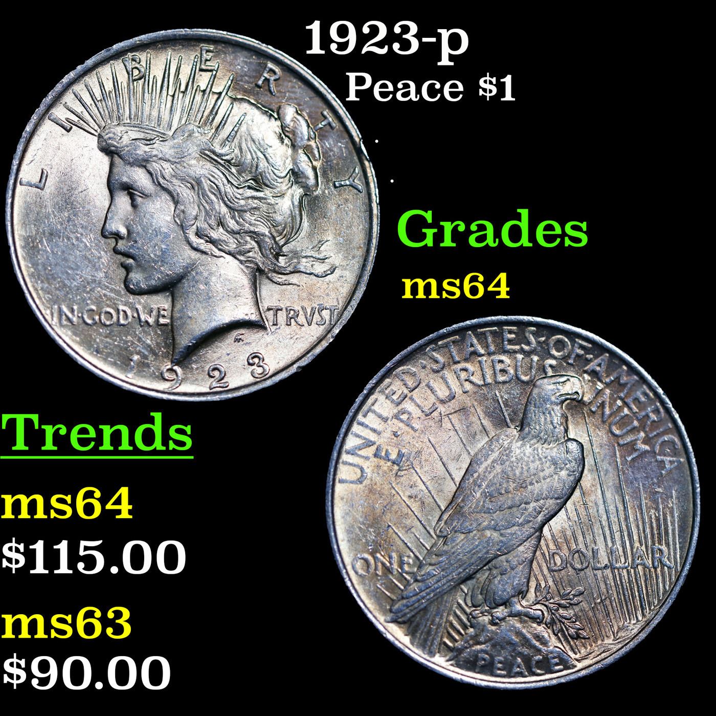 1923-p Peace Dollar $1 Grades Choice Unc.