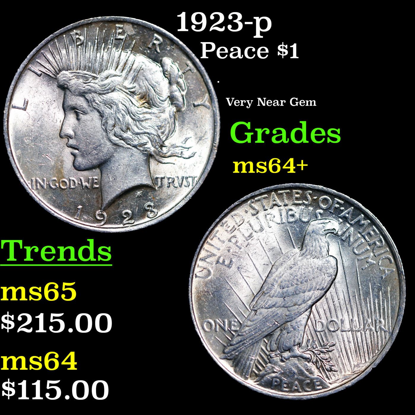 1923-p Peace Dollar $1 Grades Choice+ Unc.