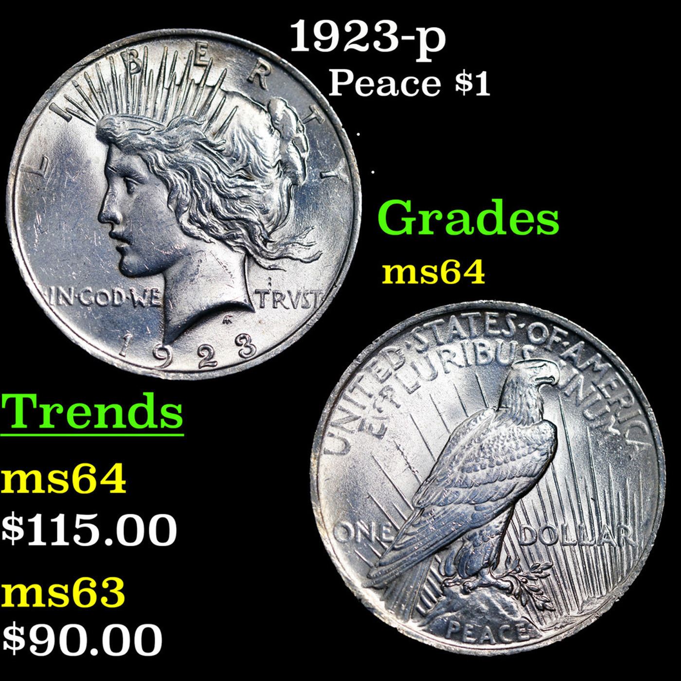1923-p Peace Dollar $1 Grades Choice Unc.