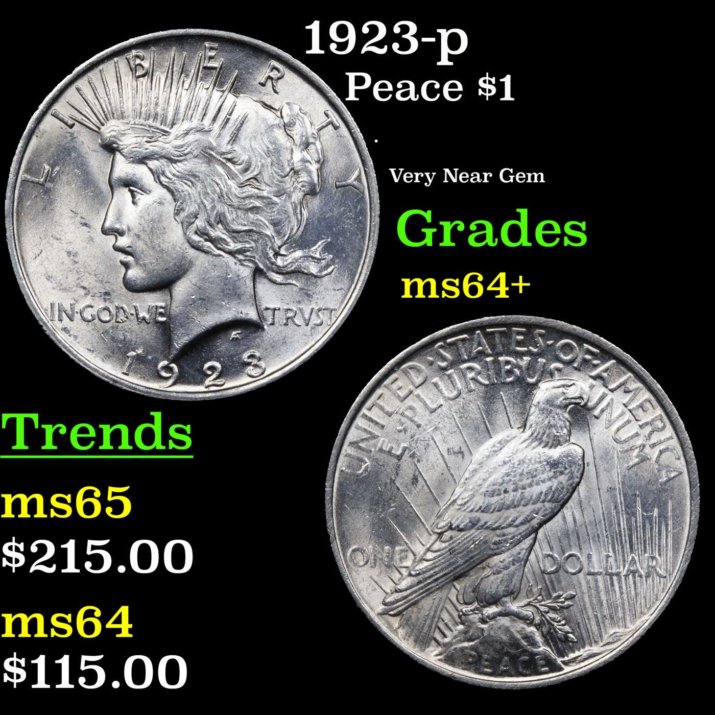 1923-p Peace Dollar $1 Grades Choice+ Unc.