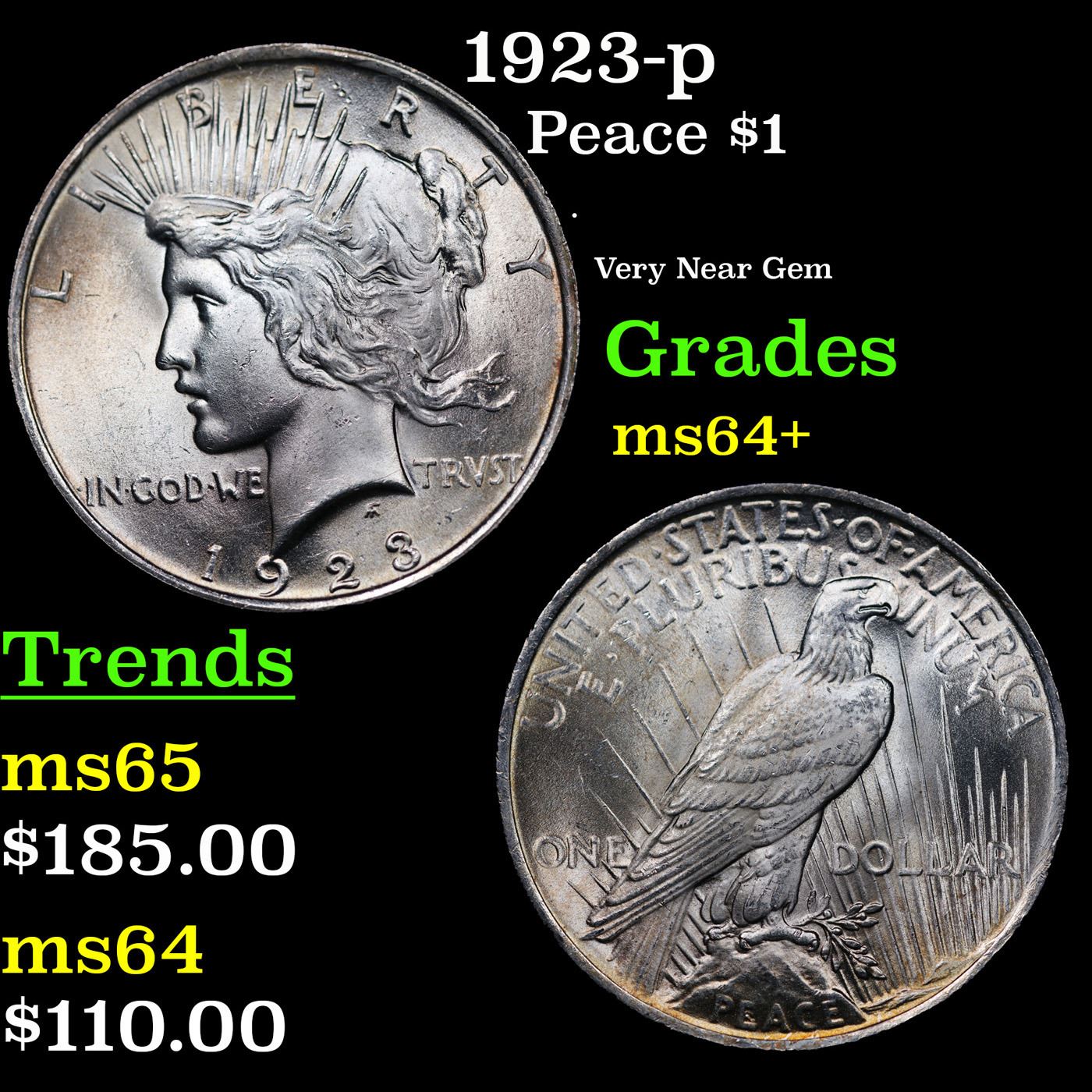 1923-p Peace Dollar $1 Grades Choice+ Unc.