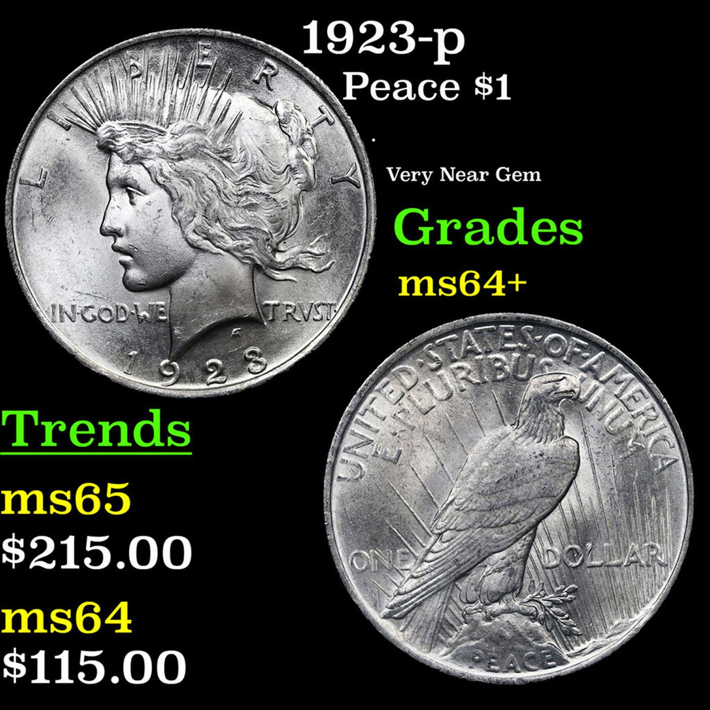 1923-p Peace Dollar $1 Grades Choice+ Unc.