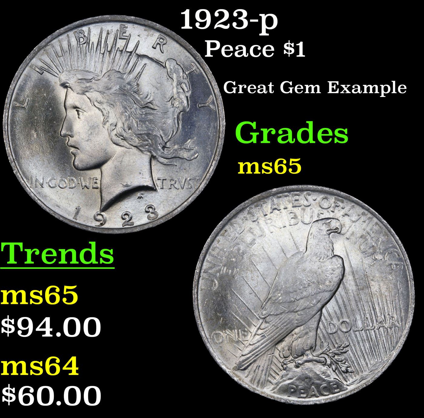 1923-p Peace Dollar $1 Grades GEM Unc.