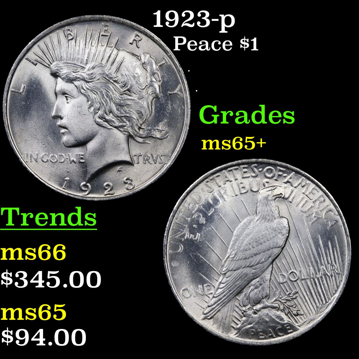 1923-p Peace Dollar $1 Grades GEM+ Unc.