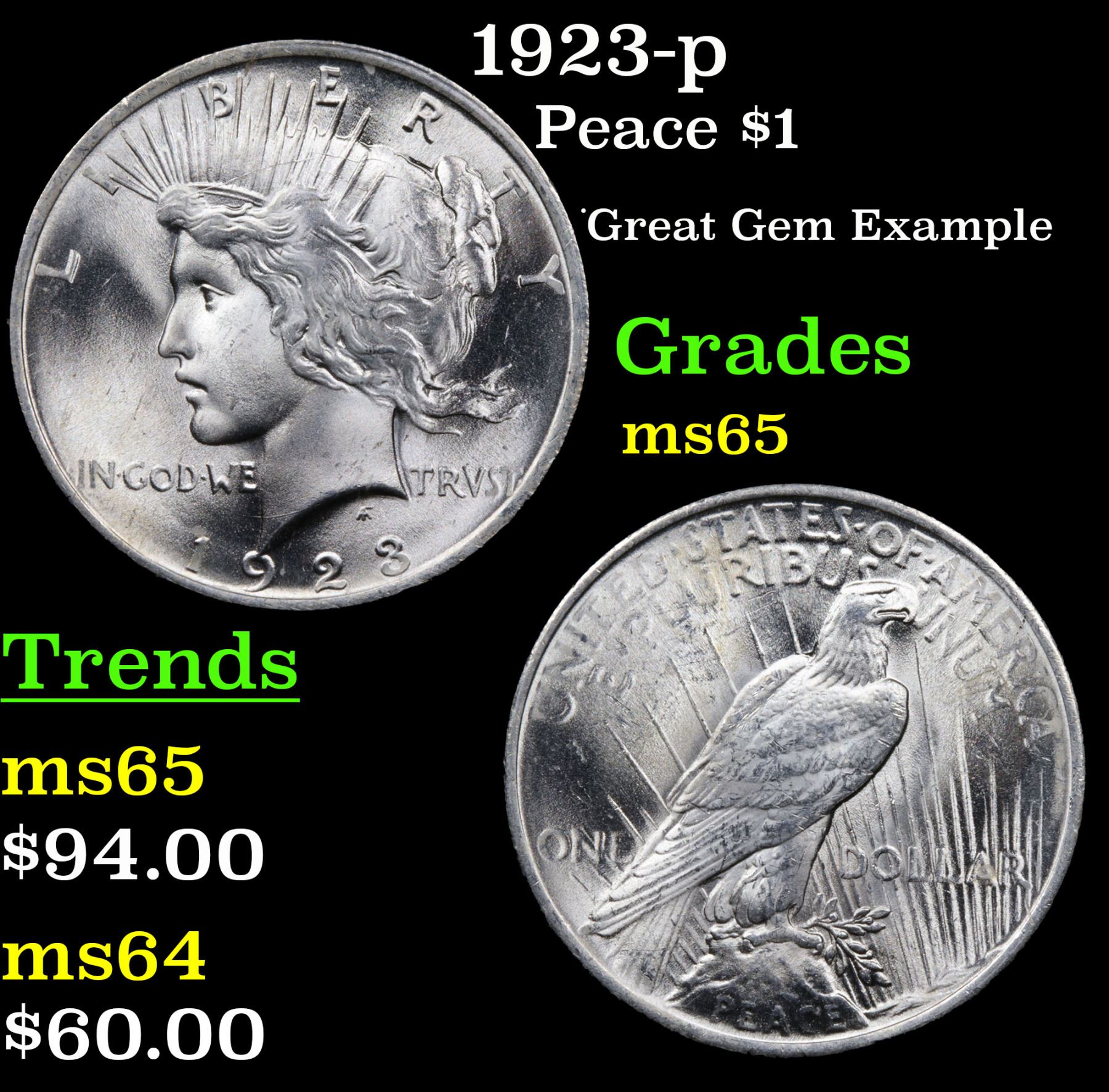 1923-p Peace Dollar $1 Grades GEM Unc.