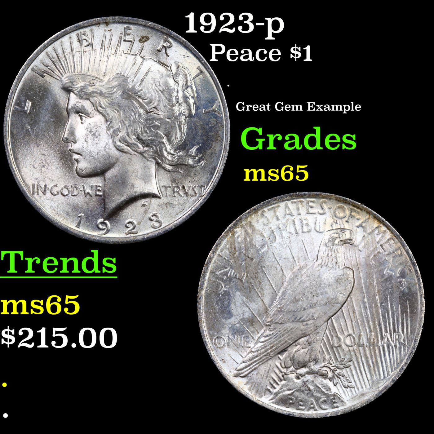 1923-p Peace Dollar $1 Grades GEM Unc.