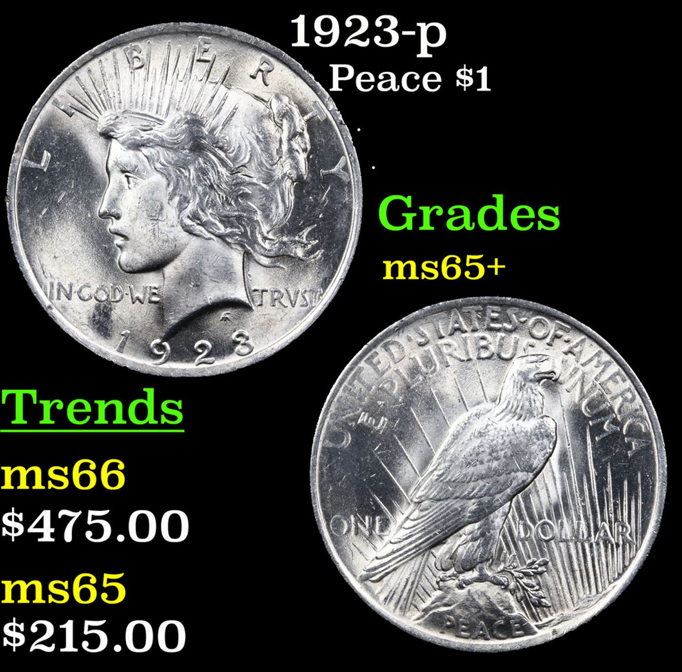 1923-p Peace Dollar $1 Grades GEM+ Unc.