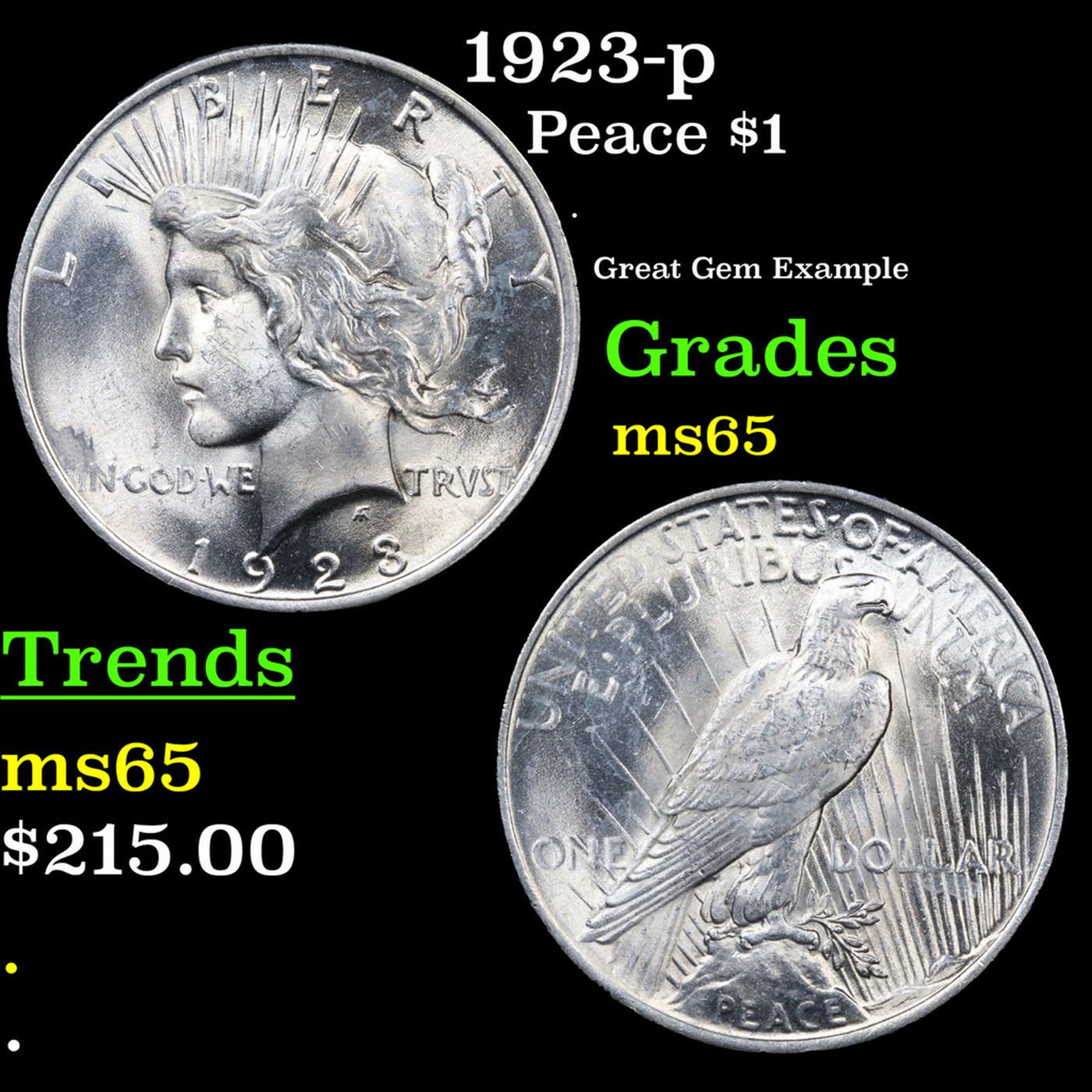 1923-p Peace Dollar $1 Grades GEM Unc.