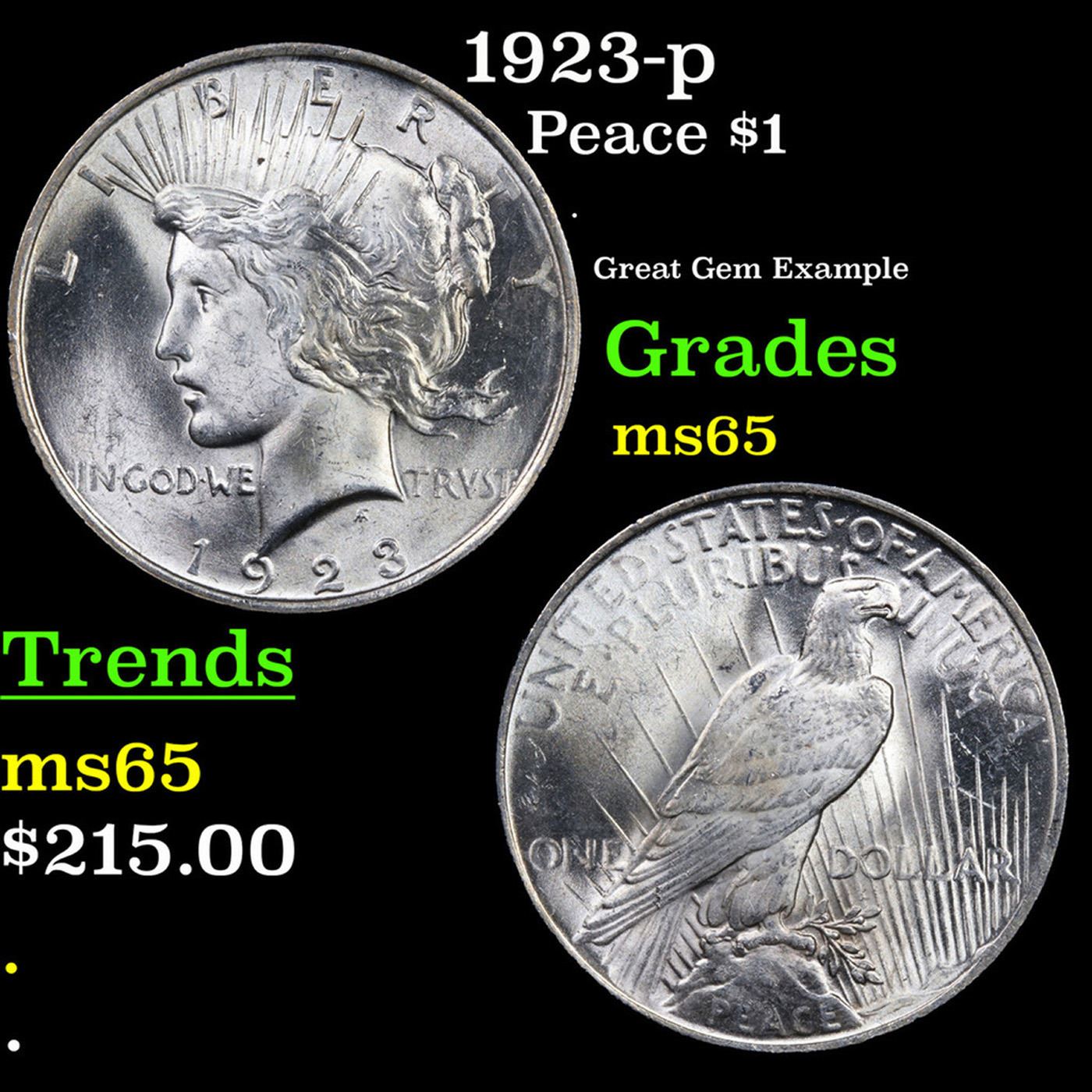 1923-p Peace Dollar $1 Grades GEM Unc.