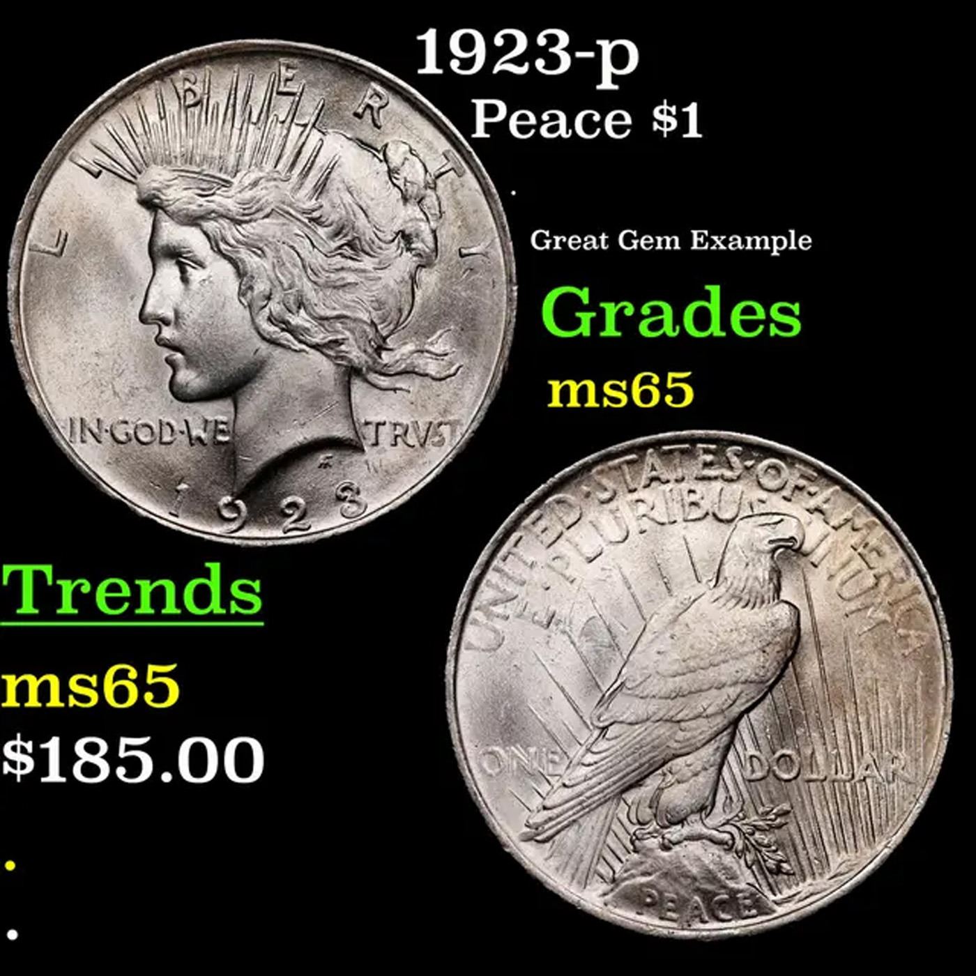 1923-p Peace Dollar $1 Grades GEM Unc.