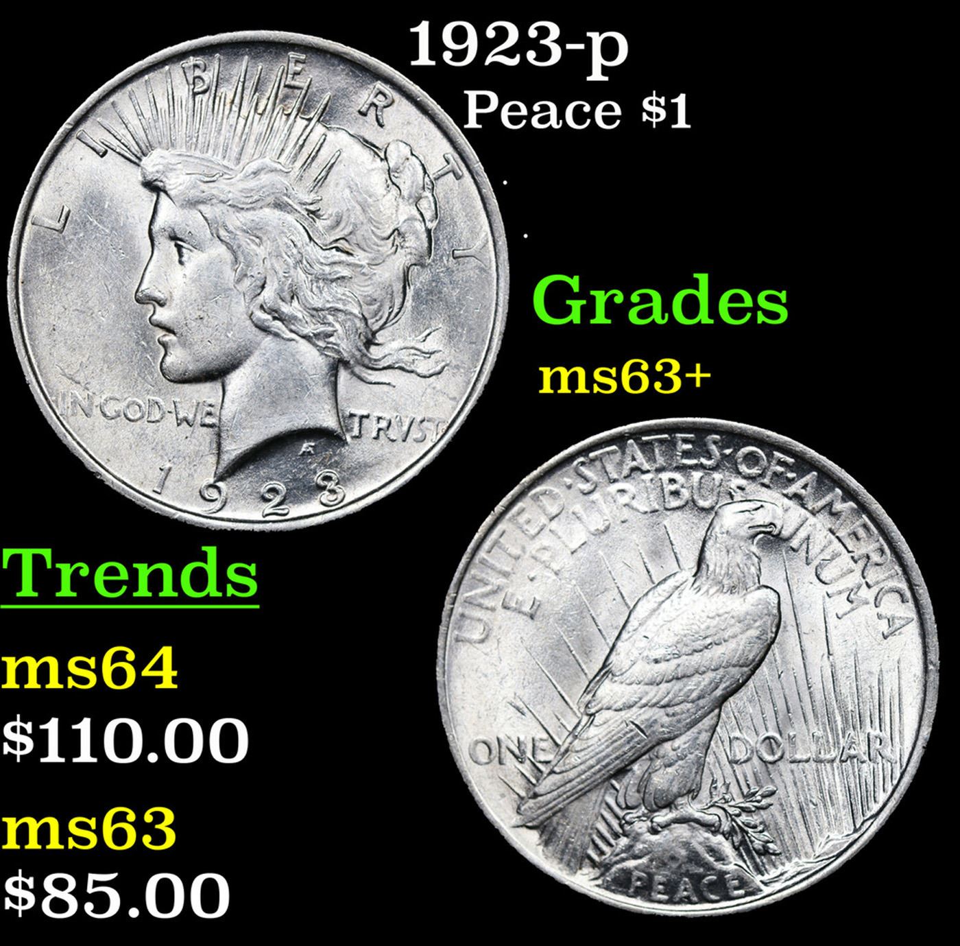 1923-p Peace Dollar $1 Grades Select+ Unc.