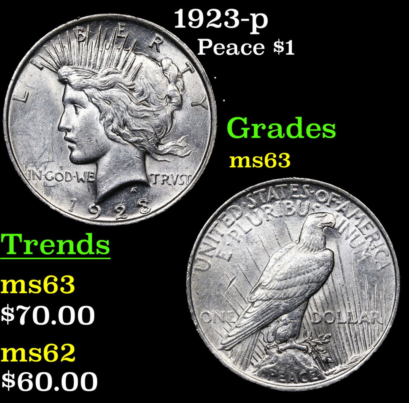 1923-p Peace Dollar $1 Grades Select Unc.