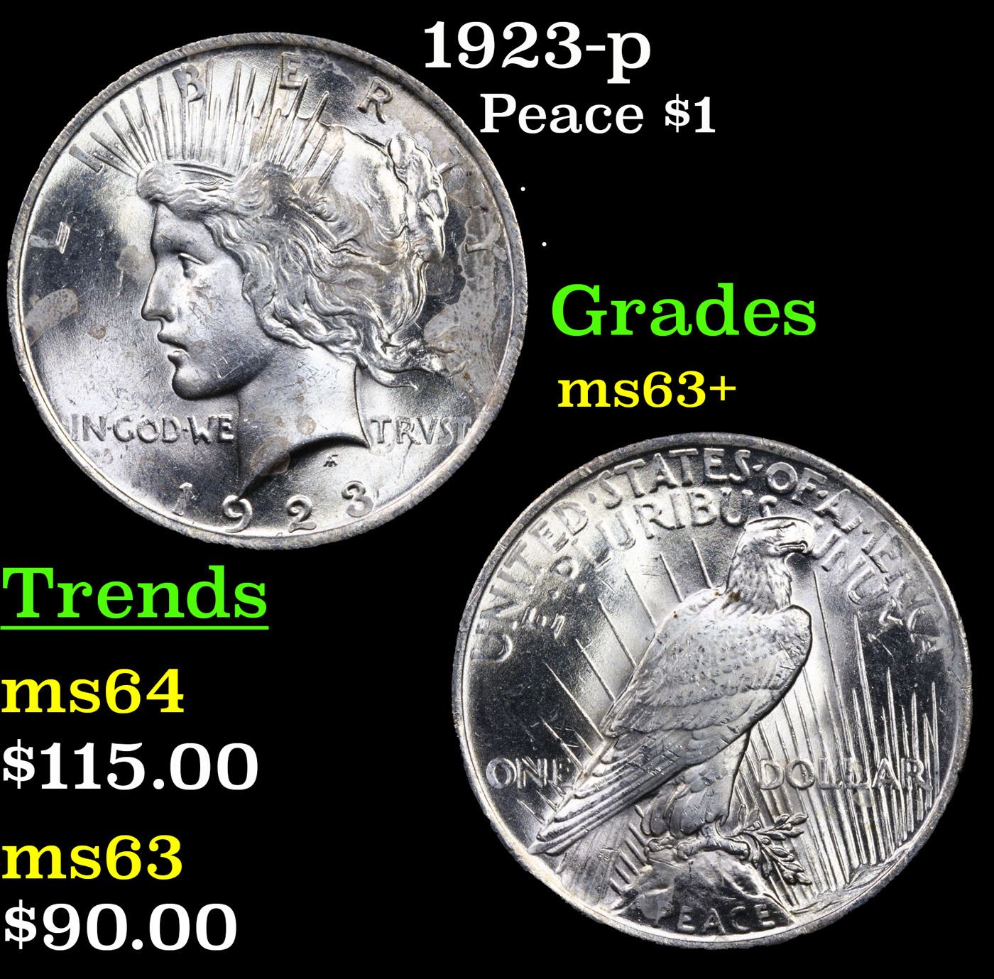 1923-p Peace Dollar $1 Grades Select+ Unc.
