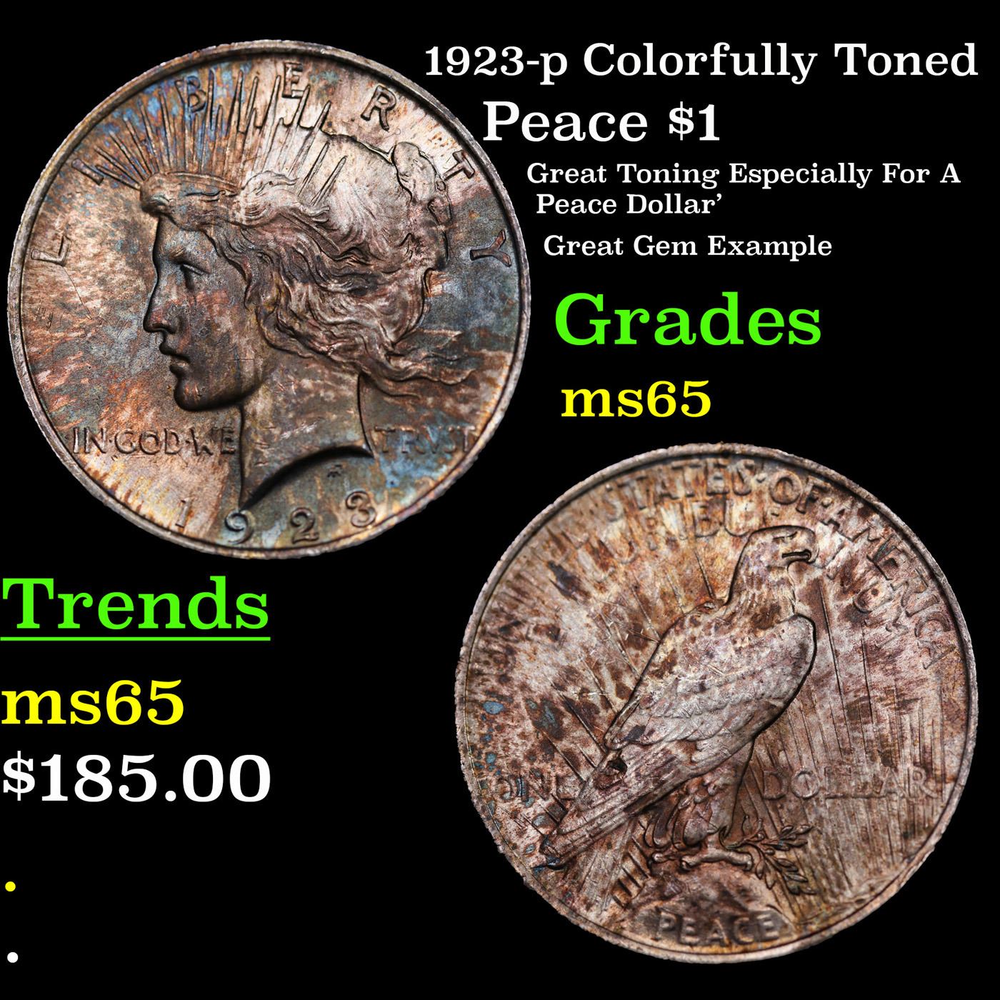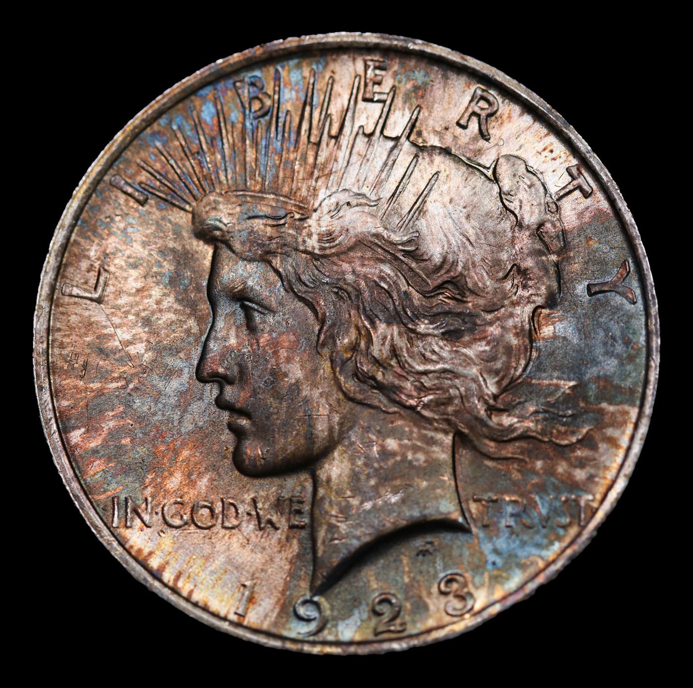 1923-p Colorfully Toned Peace Dollar $1 Grades GEM Unc.