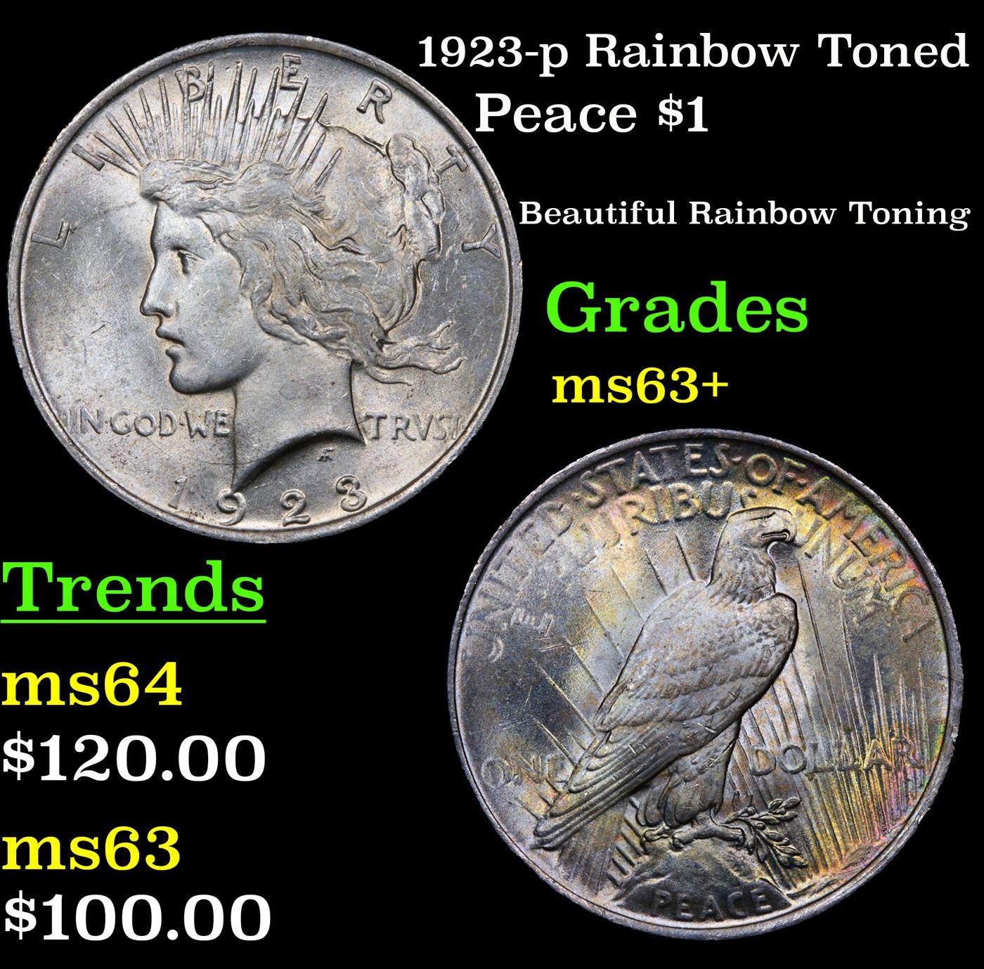 1923-p Rainbow Toned Peace Dollar $1 Grades Select+ Unc.
