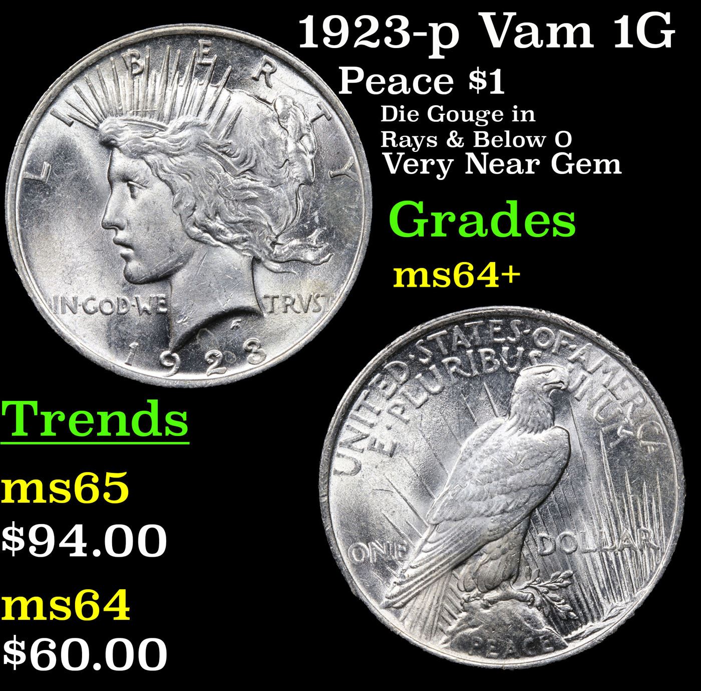 1923-p Vam 1G Peace Dollar $1 Grades Choice+ Unc.