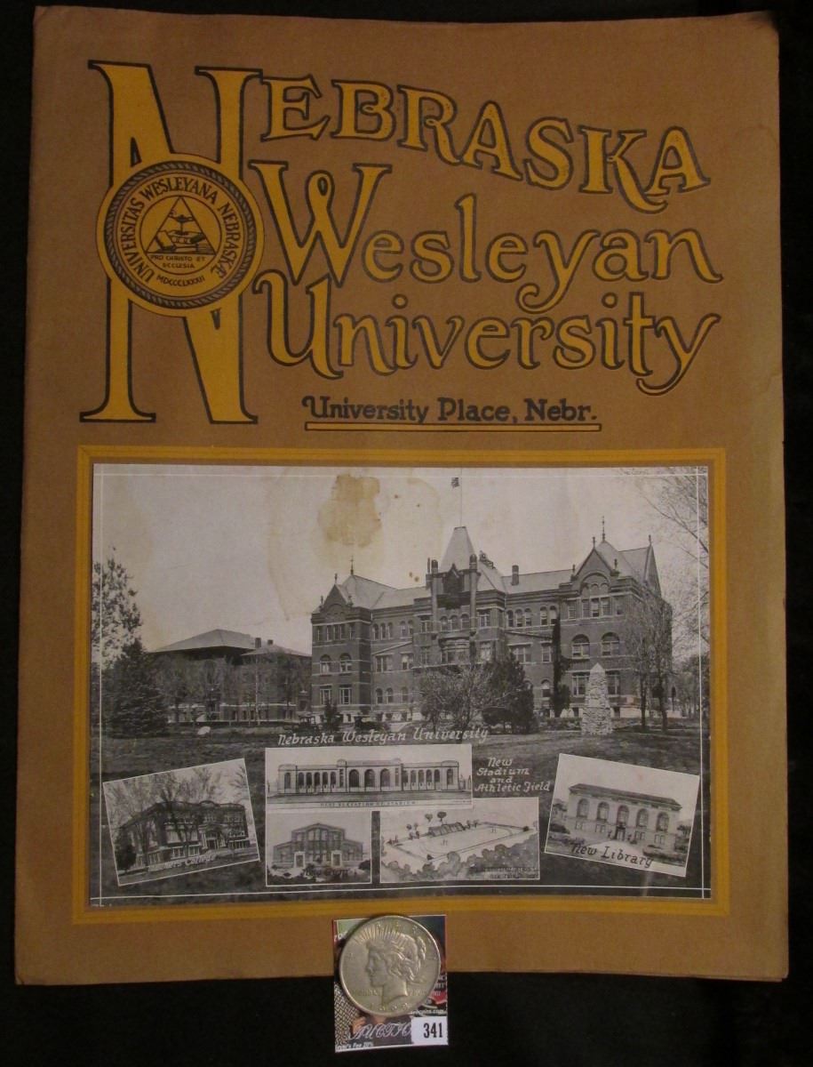 1923 recruiting Booklet "Nebraska Wesleyan University University Place, Nebr." 11" x 14"; & 1923 P U.S. Peace Silver Dollar, VF.