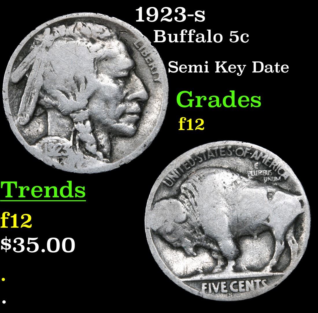 1923-s Semi Key Date . Buffalo Nickel 5c Grades f, fine.